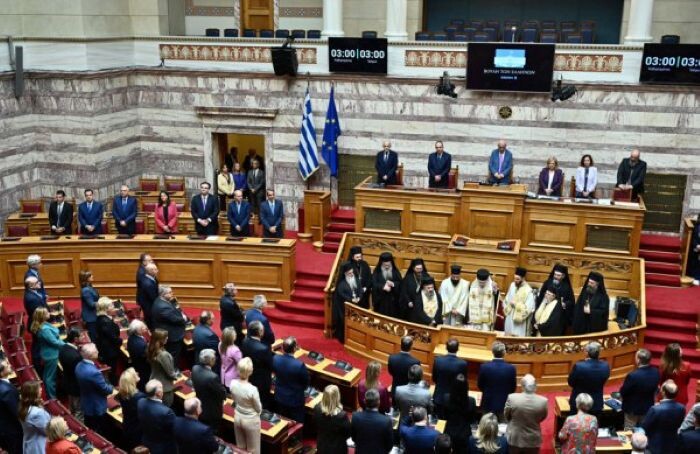 Η καθιερωμένη ακολουθία του Αγιασμού τελέσθηκε σήμερα το πρωί στην Ολομέλεια της Βουλής των Ελλήνων, για την έναρξη των εργασιών της Γ΄ περιόδου της Κ΄ Προεδρευομένης Κοινοβουλευτικής Δημοκρατίας, από τον Αρχιεπίσκοπο Αθηνών και Πάσης Ελλάδος κ. Ιερώνυμο και μέλη της Δ.Ι.Σ..