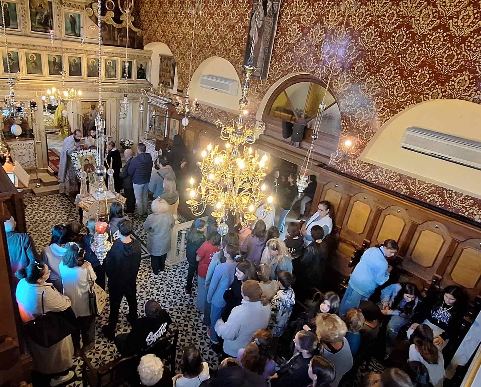 Την Τρίτη, 21 Οκτωβρίου 2025, εορτή της ανακομιδής των Ιερών Λειψάνων του Οσίου Χριστοδούλου του εν Πάτμω, ο Σεβασμιώτατος Μητροπολίτης Κερκύρας, Παξών και Διαποντίων Νήσων, κ. Νεκτάριος, λειτούργησε και ομίλησε στην Ιερά Μονή Αγίου Θεοδώρου Τήρωνος και Γεωργίου Τροπαιοφόρου Στρατιάς στην πόλη της Κέρκυρας. Στη Θεία Λειτουργία, πλαισίωσαν το Σεβασμιώτατο, ο Ηγούμενος της Ιεράς Μονής και Ιεροκήρυκας του Ιερού Προσκυνήματος του Αγίου Σπυρίδωνος, Αρχιμανδρίτης Χριστόδουλος Τριαντάφυλλος ο οποίος άγει τα ονομαστήριά του, ο Αρχιμ. Ανδρέας Γκιόκας και ο Ιεροδιάκονος του Σεβασμιωτάτου π. Ευσέβιος Πανδής, μέλη της αδελφότητας της Ιεράς Μονής και ο Διάκονος, π. Σπυρίδων Πηγής. Στη Θεία Λειτουργία παρέστησαν συμπροσευχόμενοι και άλλοι κληρικοί της Ιεράς Μητροπόλεως, μεταξύ των οποίων και ο Αιδεσιμολογιώτατος Πρωτ. Θεμιστοκλής Μουρτζανός, Γενικός Αρχιερατικός Επίτροπος της Ιεράς Μητροπόλεως, ο οποίος με την ιδιότητά του ως Διευθυντής του γειτονικού με την Ιερά Μονή 7ου Γυμνασίου Κέρκυρας, συνόδευσε αρκετές τάξεις μαθητών ώστε να συμμετάσχουν στη Θεία Λειτουργία στο πλαίσιο των μαθημάτων και των δράσεων του σχολείου.