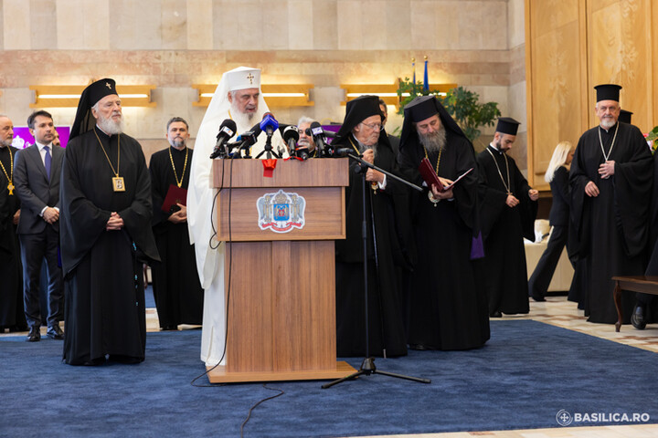 Ο Πατριάρχης Ρουμανίας κ. Δανιήλ καλωσορίζοντας τον Οικουμενικό Πατριάρχη κ. Βαρθολομαίο στη Ρουμανία εξέφρασε την ευγνωμοσύνη του για την αποδοχή της πρόσκλησης να προστεί της τελετής του Καθαγιασμού των Ιερών Εικόνων του νεοανεγερθέντος Εθνικού Καθεδρικού Ναού στο Βουκουρέστι και των επετειακών εκδηλώσεων συμπλήρωσης 140 ετών από την απονομή της Αυτοκεφαλίας στην Εκκλησία της Ρουμανίας και 100 ετών από την ανύψωσή της σε Πατριαρχείο από τον Οικουμενικό Θρόνο.