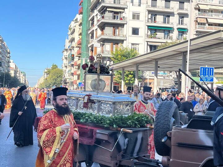 Με ευλάβεια και κατάνυξη τελέστηκε η λιτανεία του Αγίου Δημητρίου και της Παναγίας Φανερωμένης «Βαθυρρύακος» στους δρόμους της Θεσσαλονίκης.