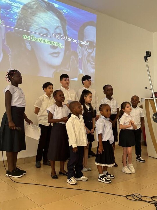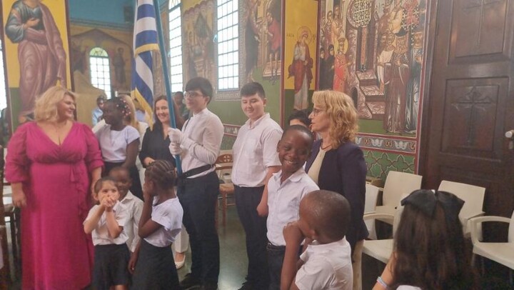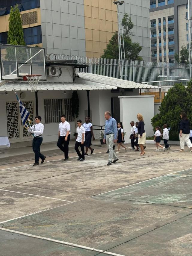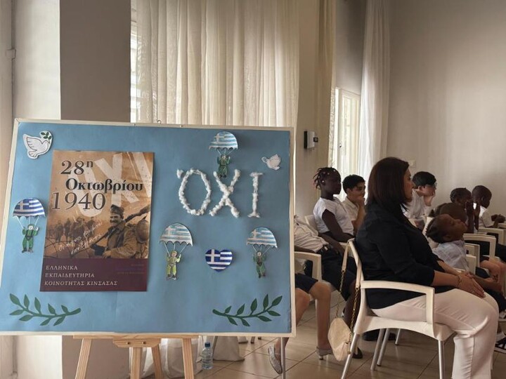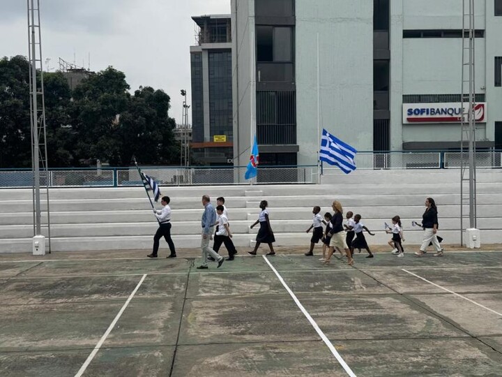 Οι μαθητές του Ελληνικού Σχολείου παρέλασαν στον αύλειο χώρο της Ελληνικής Κοινότητας Κινσάσας και στην συνέχεια παρουσίασαν εορταστική εκδήλωση την οποίαν χαιρέτησαν ο Πρέσβης, ο Μητροπολίτης και ο Πρόεδρος της Ελληνικής Κοινότητας Κινσάσας.