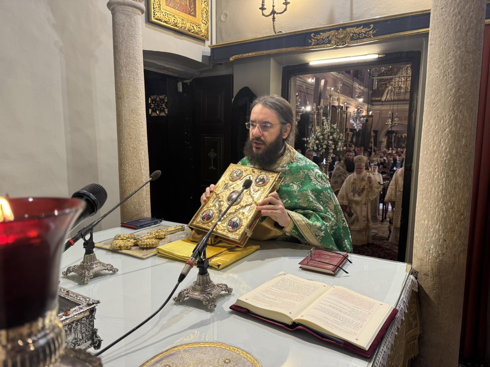 Το πρωί, στο Ιερό προσκύνημα, τελέστηκε Αρχιερατικός Συλλείτουργο, προεξάρχοντος του Σεβασμιωτάτου Μητροπολίτου Μπουκοβίνας και πάσης Μολδαβίας κ. Θεοφάνους, με τη συμμετοχή των προσκεκλημένων Αρχιερέων και του οικείου Ποιμενάρχου κ. Νεκταρίου. Ομίλησε ο κ. Θεοφάνης, ο οποίος, μεταξύ άλλων, τόνισε ότι ο Άγιος Σπυρίδων είναι ένας μεγάλος Άγιος της Εκκλησίας, τον οποίο τιμούν οι πιστοί σε όλα τα μέρη του κόσμου, γιατί ήταν μεγάλη η αγάπη του τόσο προς τον Θεό όσο και προς τον συνάνθρωπο.