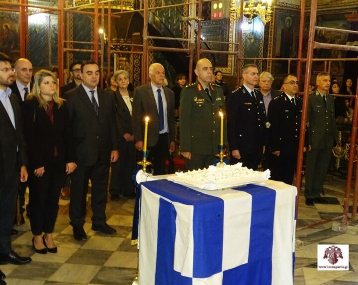 Οι εκδηλώσεις τιμής και μνήμης στη λακωνική πρωτεύουσα ξεκίνησαν στον Μητροπολιτικό Ναό Ευαγγελιστρίας, αμέσως μετά τη Θεία Λειτουργία, με Δοξολογία για την Εθνική Αντίσταση και επιμνημόσυνη δέηση για τους 118 συμπατριώτες μας, υπό του Σεβασμιωτάτου Μητροπολίτη Μονεμβασίας και Σπάρτης κ. Ευσταθίου. Ακολούθησε η εκφώνηση επίκαιρης ομιλίας από τον φιλόλογο, συγγραφέα και δημοσιογράφο, κ. Χάρη Βασιλάκο.