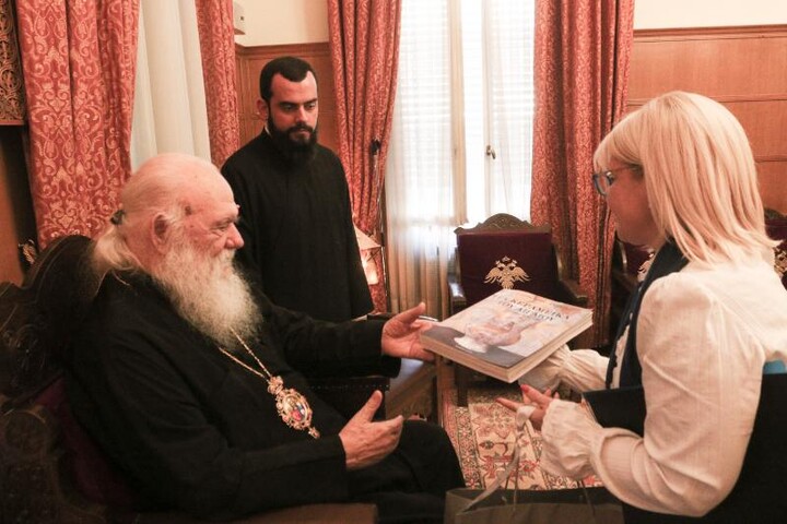 Από την πλευρά της, η κ. Ράπτη ευχαρίστησε τον Αρχιεπίσκοπο για τη διαχρονική συμβολή και τη στήριξή του στο έργο του Κέντρου και μετέφερε τις θερμές ευχές όλων για καλά Χριστούγεννα.