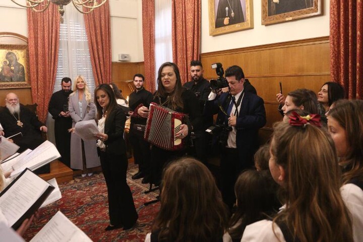Παραδοσιακά χριστουγεννιάτικα τραγούδια και κάλαντα έψαλαν σήμερα, από νωρίς το πρωί, στον Αρχιεπίσκοπο Αθηνών και πάσης Ελλάδος κ. Ιερώνυμο, φορείς και σύλλογοι από όλη τη χώρα.