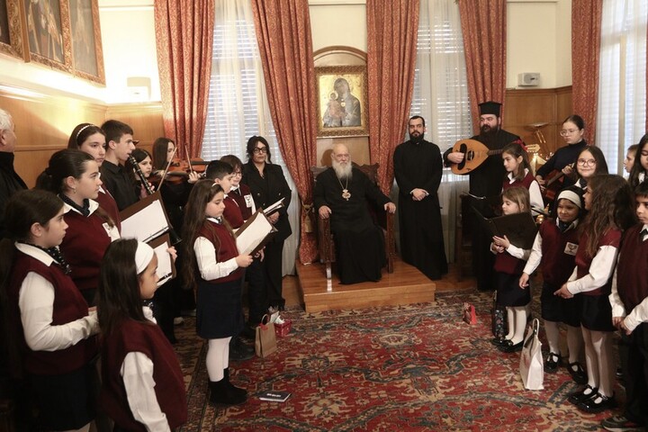 Χριστουγεννιάτικα Κάλαντα και ευχές στον Αρχιεπίσκοπο (ΦΩΤΟ)
