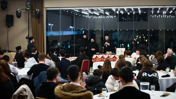 Αργότερα, στις 8:00 το βράδυ, παρέστη στη σύναξη φοιτητριών, φοιτητών και νέων, η οποία πραγματοποιήθηκε με τη φροντίδα του Γραφείου Νεότητος στο ξενοδοχείο «Elpida Resort» των Σερρών. Η συμμετοχή των νέων υπήρξε και φέτος ιδιαίτερα εντυπωσιακή. Μετά την ευλογία της Αγιοβασιλειόπιτας, ο Σεβασμιώτατος μίλησε για τη ζωτική σημασία της πίστεως στον Χριστό ως Θεό και Σωτήρα στη ζωή των νέων ανθρώπων, που οικοδομούν το μέλλον τους, καθώς και για τον καθοριστικό ρόλο της οικογένειας ως θεμέλιο της ζωής και της υγιούς ανάπτυξης του ανθρώπου.