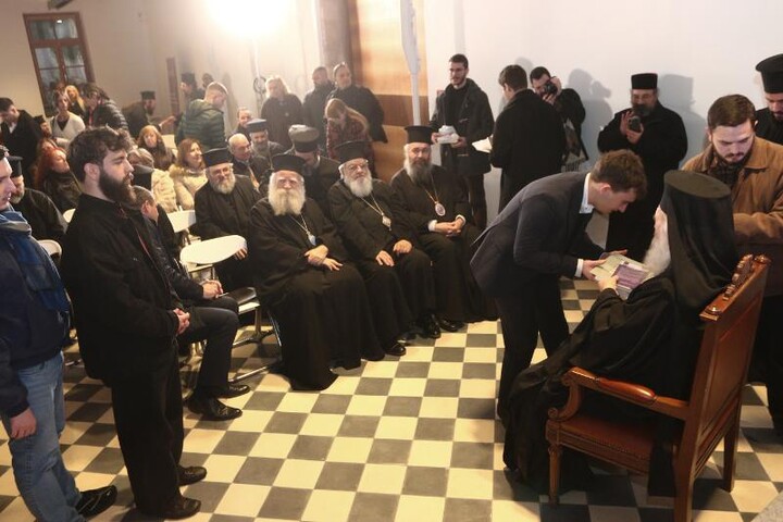 Στην εκδήλωση παρευρέθησαν οι Σεβασμιώτατοι Συνοδικοί Μητροπολίτες Χαλκίδος κ. Χρυσόστομος, Νέας Σμύρνης κ. Συμεών, Μεσογαίας και Λαυρεωτικής κ. Νικόλαος, Πατρών κ. Χρυσόστομος, Κυθήρων και Αντικυθήρων κ. Σεραφείμ, Καστορίας κ. Καλλίνικος, Φλωρίνης, Πρεσπών και Εορδαίας κ. Ειρηναίος και ο Αρχιγραμματεύς της Ιεράς Συνόδου, Θεοφιλέστατος Επίσκοπος Σκιάθου κ. Ιωάννης.