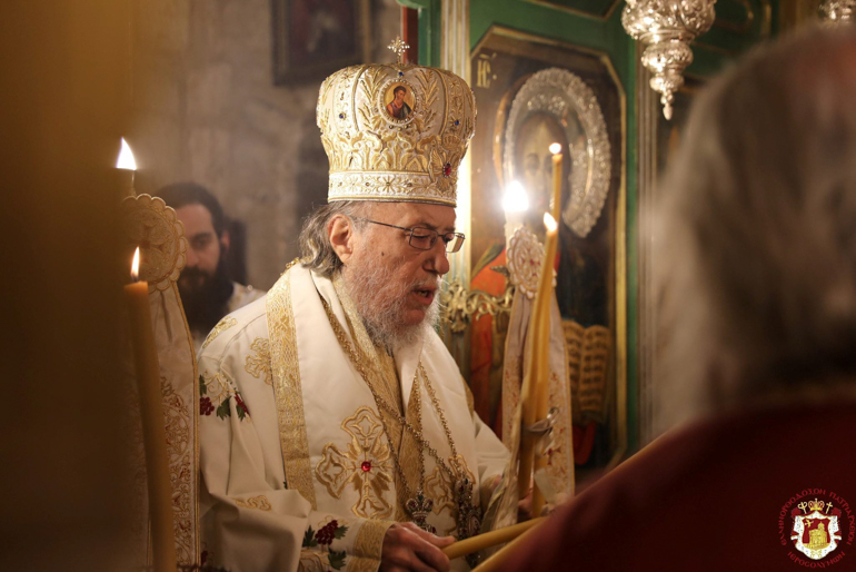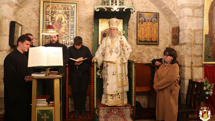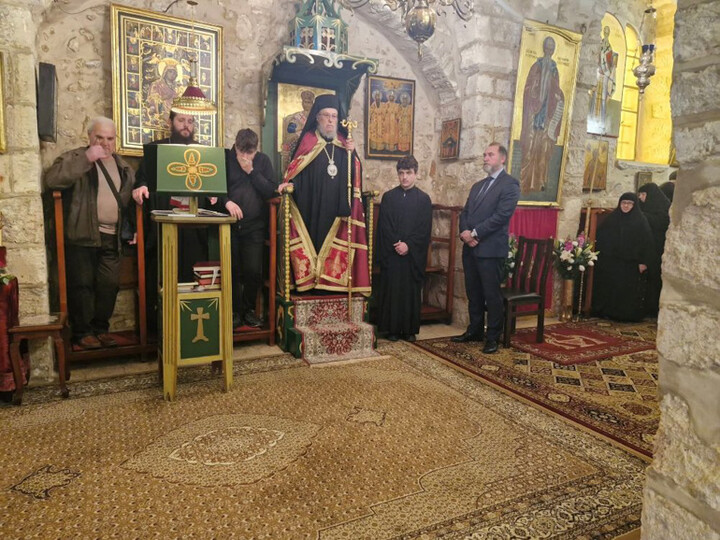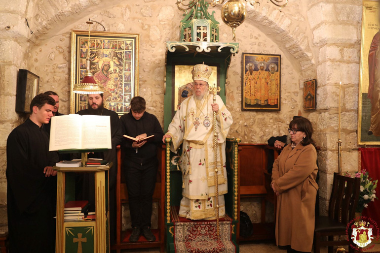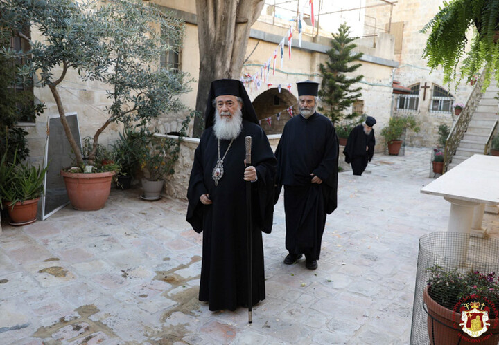 Διαρκούσης τῆς θείας Λειτουργίας ἐπεσκέφθη διά προσκύνησιν τήν Ἱεράν Μονήν ἡ Α.Θ.Μ. ὁ Πατήρ ἡμῶν καί Πατριάρχης Ἱεροσολύμων κ.κ. Θεόφιλος.