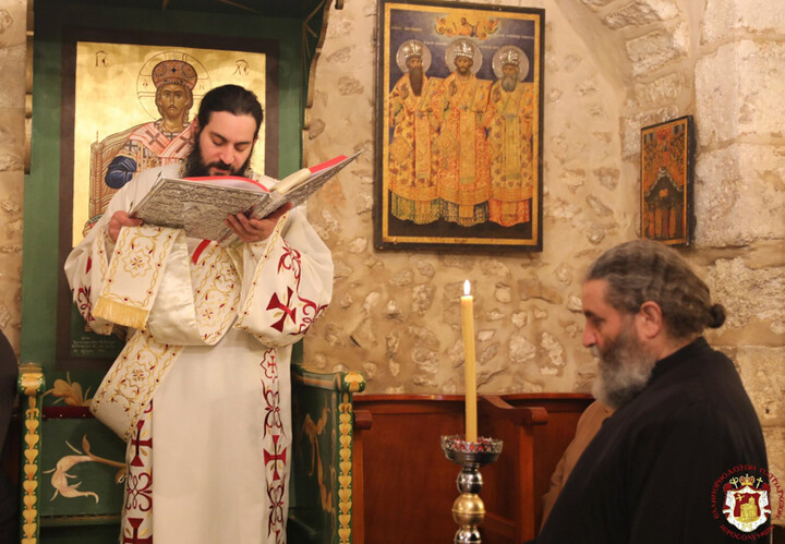 Εἰς τήν ἐν Ιεροσολύμοις Ἱεράν Μονήν αὐτοῦ ἐτελέσθη Ἑσπερινός ἀφ’ ἑσπέρας καί θεία Λειτουργία τήν πρωΐαν, προεξάρχοντος τοῦ Σεβασμιωτάτου Ἀρχιεπισκόπου Ἀβήλων κ. Δωροθέου συλλειτουργούντων τῶν Ἁγιοταφιτῶν Ἀρχιμανδριτῶν π. Μακαρίου, π. Φιλουμένου καί π. Ἀμφιλοχίου, τῶν Ἱερέων π. Φάραχ καί π. Νικολάου, ψάλλοντος τοῦ Ἀρχιμανδρίτου π. Συμεών μετά τῶν μαθητῶν τῆς Πατριαρχικῆς Σχολῆς, παρουσίᾳ τοῦ Γενικοῦ Προξένου τῆς Ἑλλάδος εἰς τά Ἱεροσόλυμα κ. Δημητρίου Ἀγγελοσοπούλου καί μελῶν τοῦ Προξενείου καί μετεχόντων μοναχῶν, πιστῶν ἐξ Ἱεροσολύμων καί ὀλίγων προσκυνητῶν.