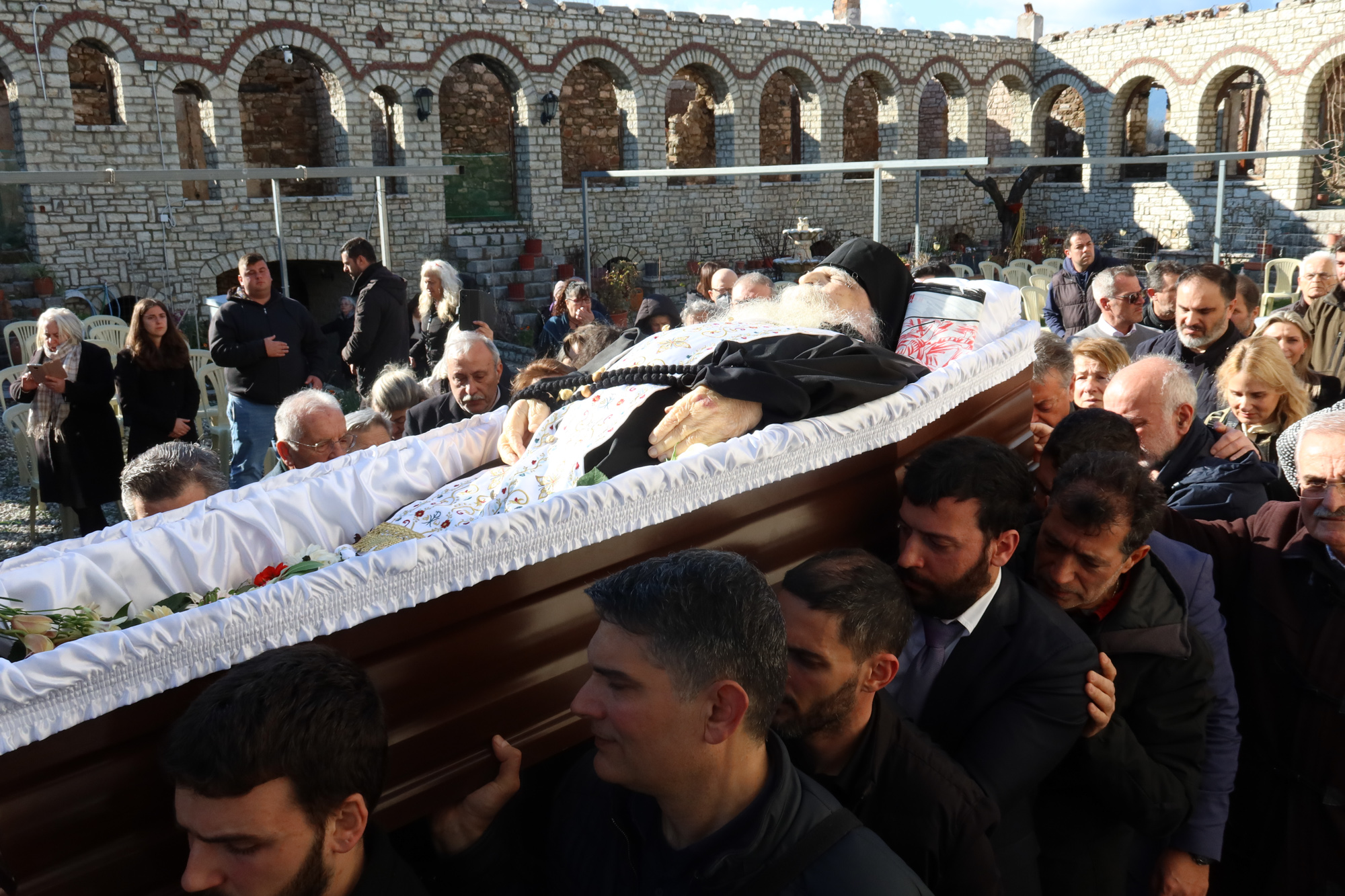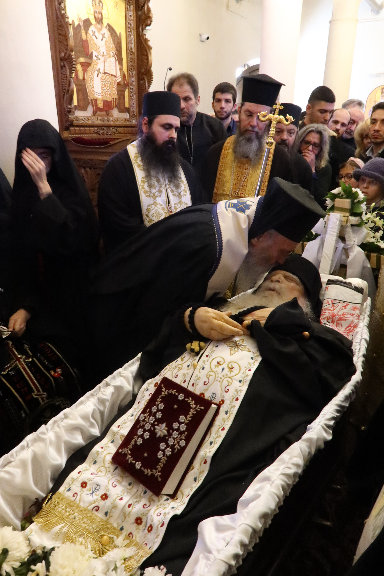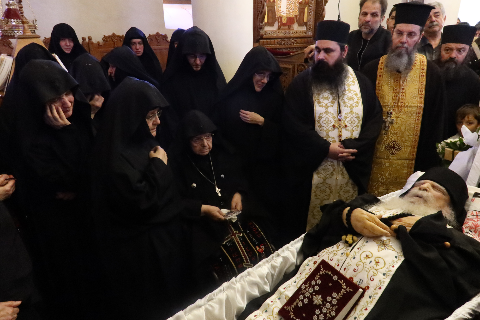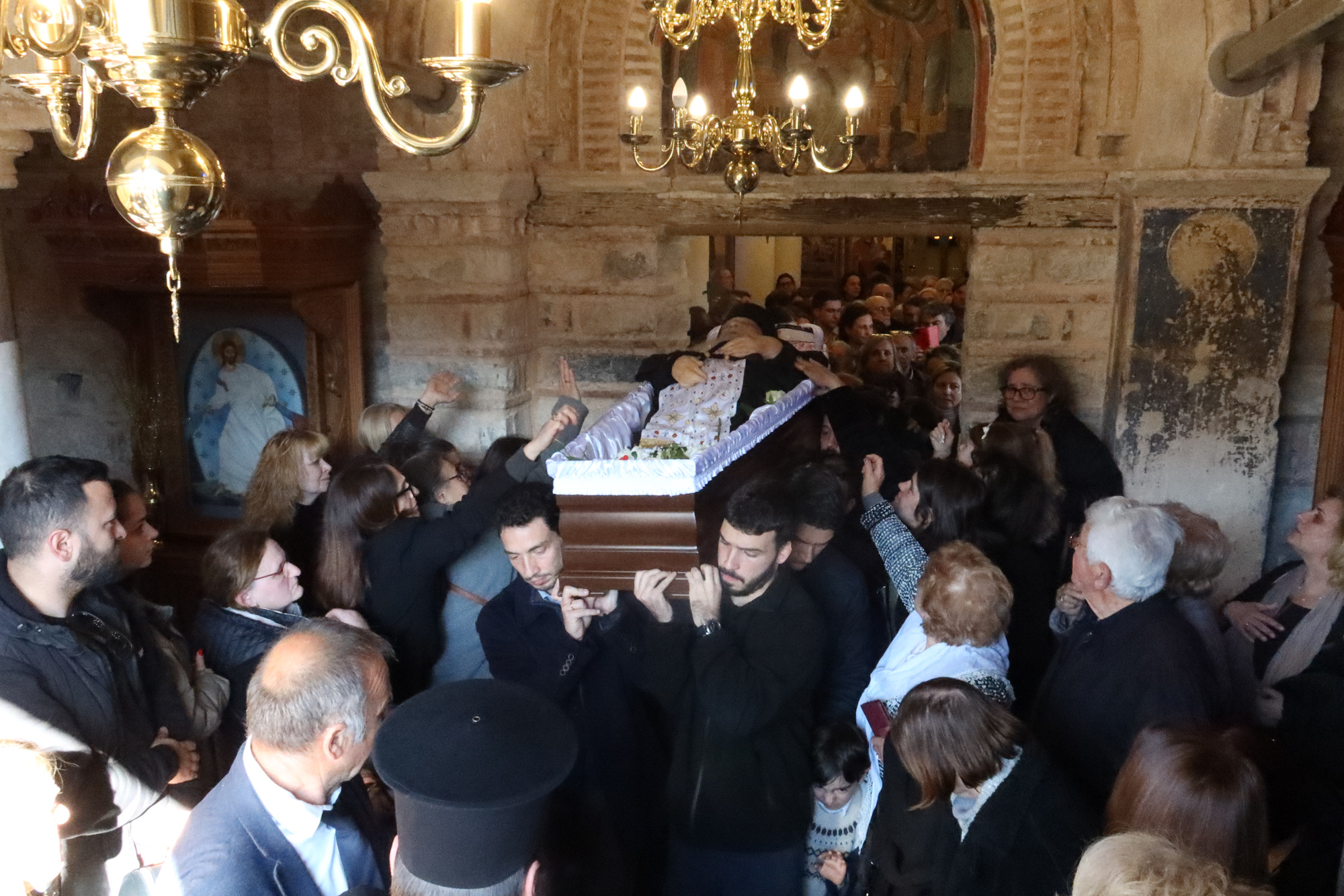 Η εξόδιος ακολουθία και ο ενταφιασμός του πραγματοποιήθηκαν με βαθιά συγκίνηση και παρουσία εκατοντάδων πιστών.