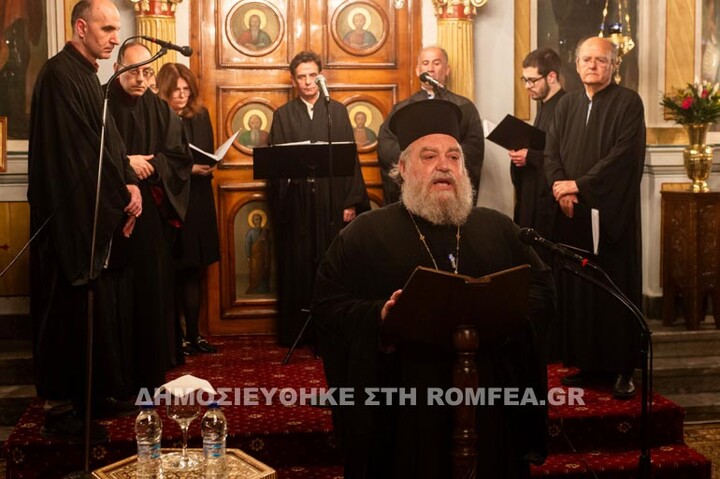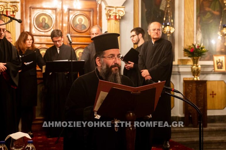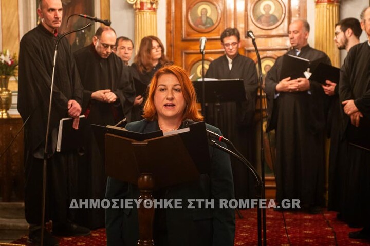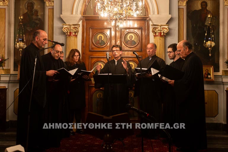 Η εκδήλωση συμπεριλάμβανε υμνολογικά απανθίσματα από την Ασματική Ακολουθία του Αγίου Χρυσοστόμου του Ιεραποστόλου, τα οποία απέδωσε η χορωδία του Ιερού Ναού, υπό την διεύθυνση του Πρωτοψάλτου κ. Γεωργίου Τσιλίκα.