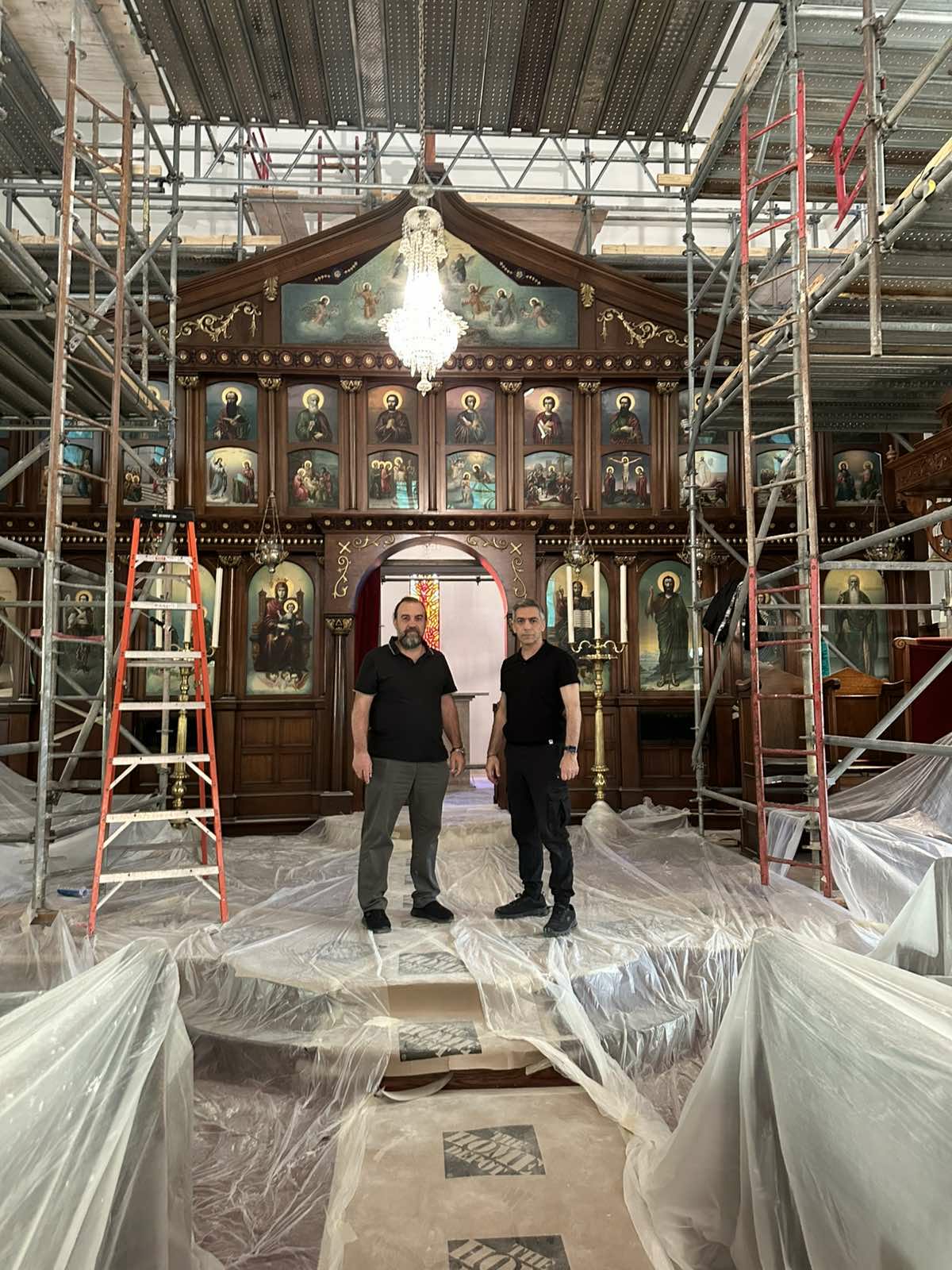 Έλληνες αγιογράφοι από τη Θεσσαλονίκη αγιογραφούν τον ιερό ναό Αγίας Σοφίας στο San Antonio του Τέξας, μεταφέροντας τη βυζαντινή παράδοση στην ομογένεια.