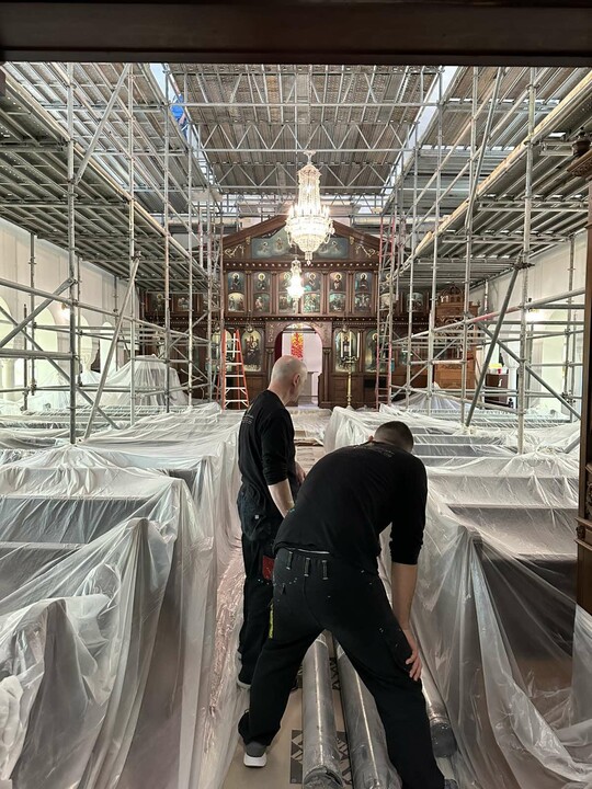 Μια ομάδα έμπειρων αγιογράφων από τη Θεσσαλονίκη βρίσκεται αυτή τη στιγμή στον ιερό ναό Αγία Σοφία στο San Antonio Texas, όπου εκτελεί την αγιογράφηση του εσωτερικού της εκκλησίας.