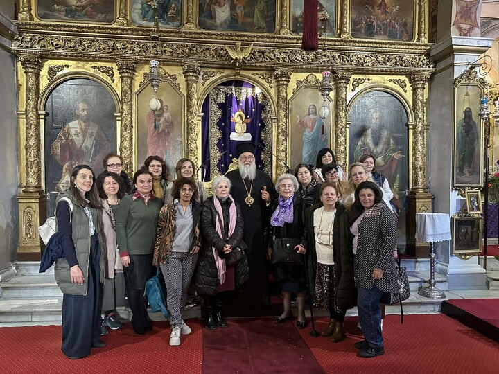 Τον Σεβασμιώτατο επισκέφθηκε μετά το πέρας της Θείας Λειτουργίας ο Χορός ψαλτριών «Αι Άδουσαι» της Ιεράς Μητροπόλεως Δημητριάδος και Αλμυρού, με επικεφαλής την χοράρχη κ. Σεβαστή Μαζέρα. Τα μέλη του χορού, που συμμετέχουν σε Χορωδιακό Φεστιβάλ στην Κέρκυρα, πήραν την ευχή του Σεβασμιωτάτου, ο οποίος τις συνεχάρη για την σημαντική προσπάθεια εκμάθησης και απόδοσης της ιερής μουσικής της Εκκλησίας, που δείχνει ζήλο και αγάπη για την τέχνη, αλλά και βαθιά πίστη στον Θεό. Η χορωδία έψαλλε στους Τρίτους Χαιρετισμούς, με ευλογία του Σεβασμιωτάτου, στον Ιερό Ναό των Αγίων Αποστόλων Ιάσονος και Σωσιπάτρου.