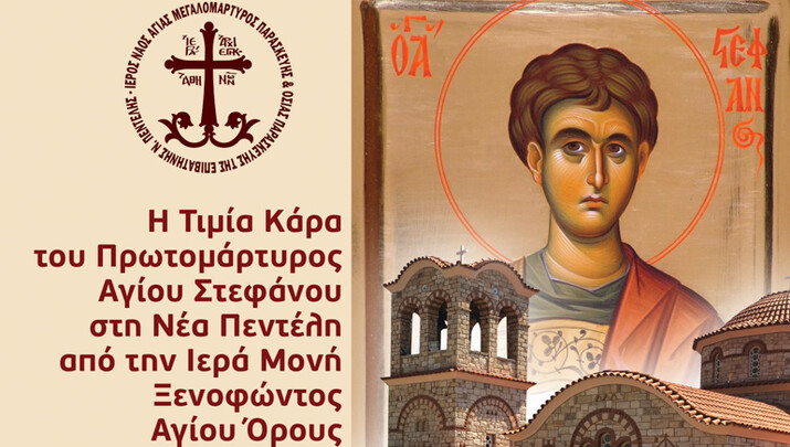 Με αισθήματα πνευματικής αγαλλιάσεως, πληροφορούμε τους φιλομάρτυρες χριστιανούς ότι το Σάββατο 21 Μαρτίου 2026 στις 5μ.μ. η ενορία της Αγίας Μεγαλομάρτυρος Παρασκευής και Οσίας Παρασκευής της Επιβατηνής στην Νέα Πεντέλη, υποδέχεται την Τιμία Κάρα του Αγίου ενδόξου Πρωτομάρτυρος Στεφάνου.