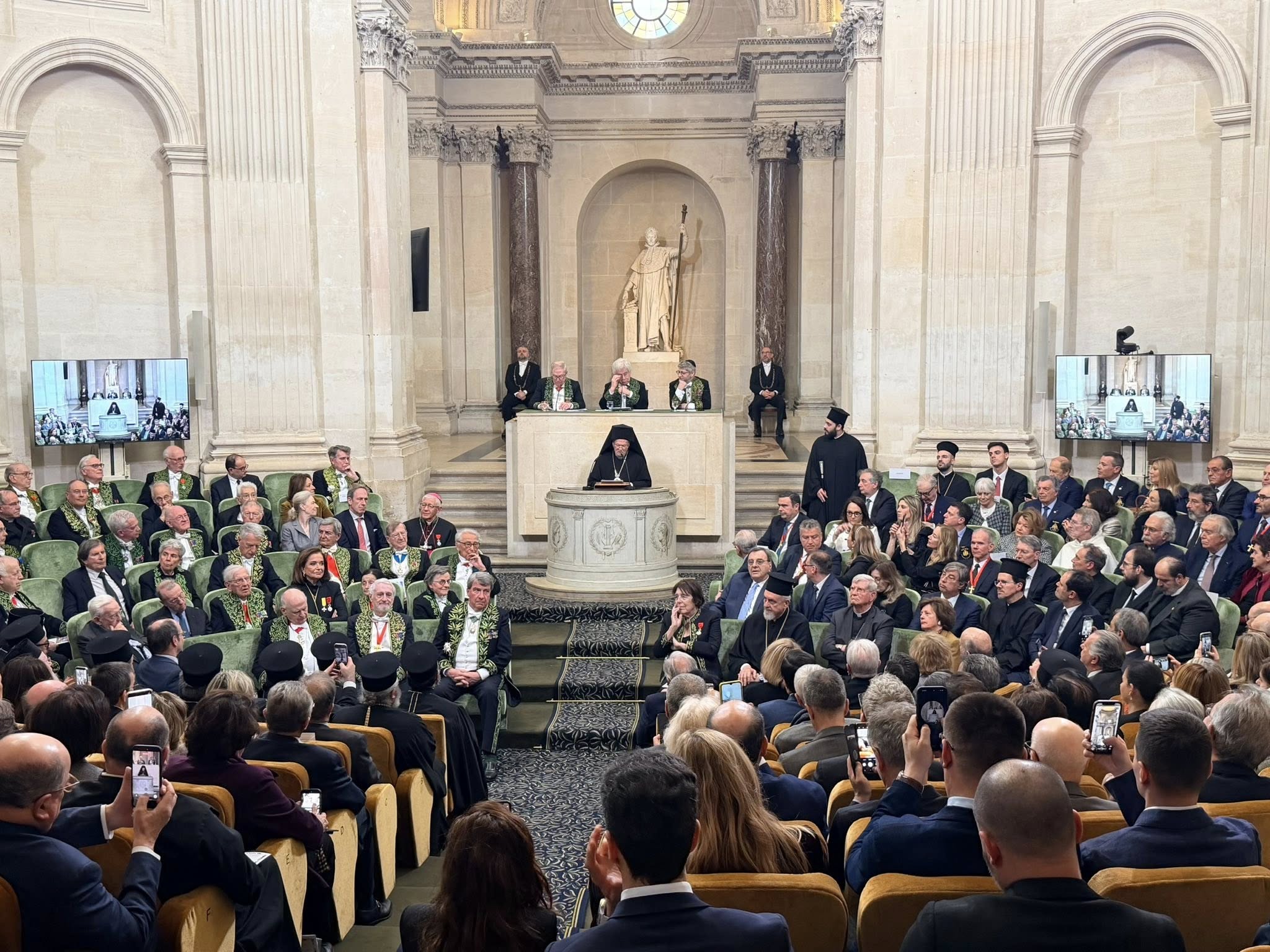 Σε μια τελετή υψηλού συμβολισμού και ακαδημαϊκού κύρους, η Γαλλική Ακαδημία Ηθικών και Πολιτικών Επιστημών αναγόρευσε το μεσημέρι της Δευτέρας, 30 Μαρτίου 2026, την Α.Θ. Παναγιότητα τον Οικουμενικό Πατριάρχη κ.κ. Βαρθολομαίο ως ξένο εταίρο της. Η εκδήλωση πραγματοποιήθηκε στο εμβληματικό Μέγαρο του Ινστιτούτου της Γαλλίας, παρουσία εξεχουσών προσωπικοτήτων της γαλλικής κοινωνίας και της διεθνούς ακαδημαϊκής κοινότητας.