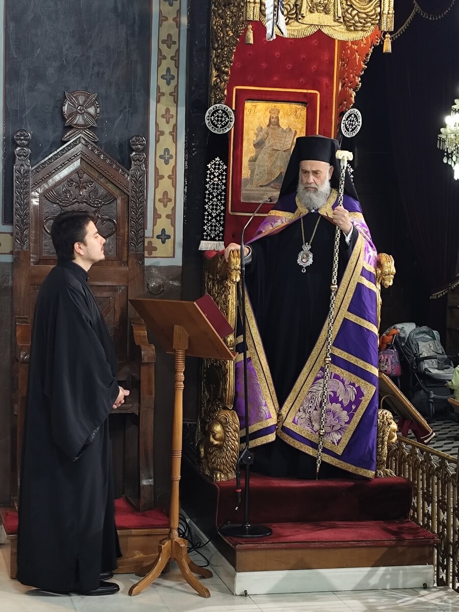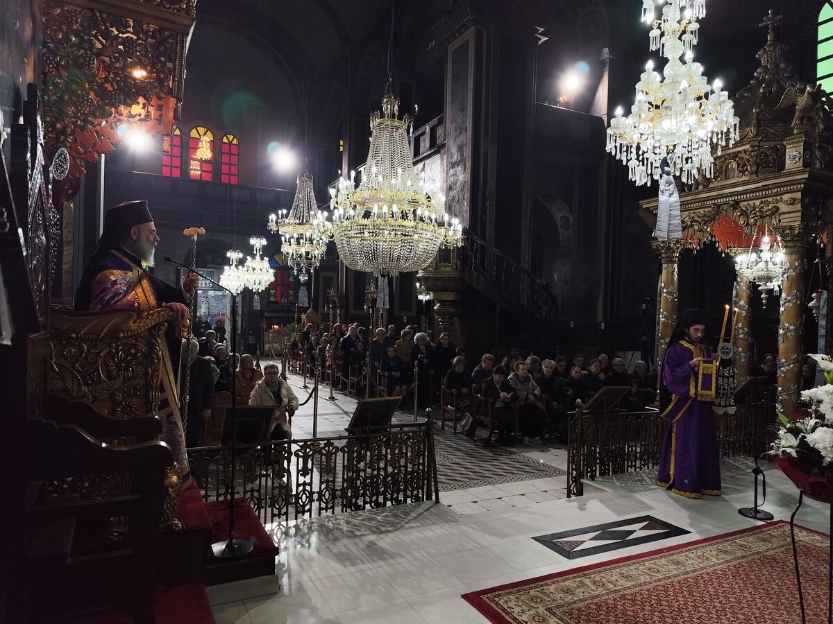 Στην πρώτη Ακολουθία του Νυμφίου στον Μητροπολιτικό Ναό των Αγίων Κωνσταντίνου και Ελένης, ο Σεβασμιώτατος ανέλυσε το μήνυμα της άκαρπης συκιάς και της αληθούς μετανοίας.