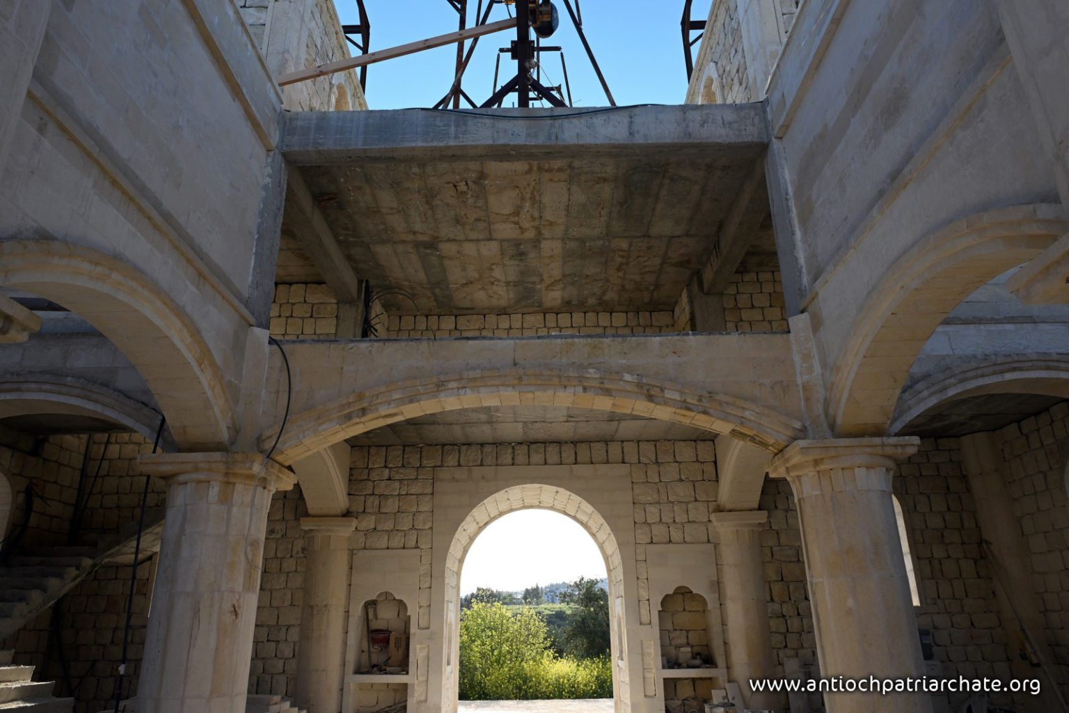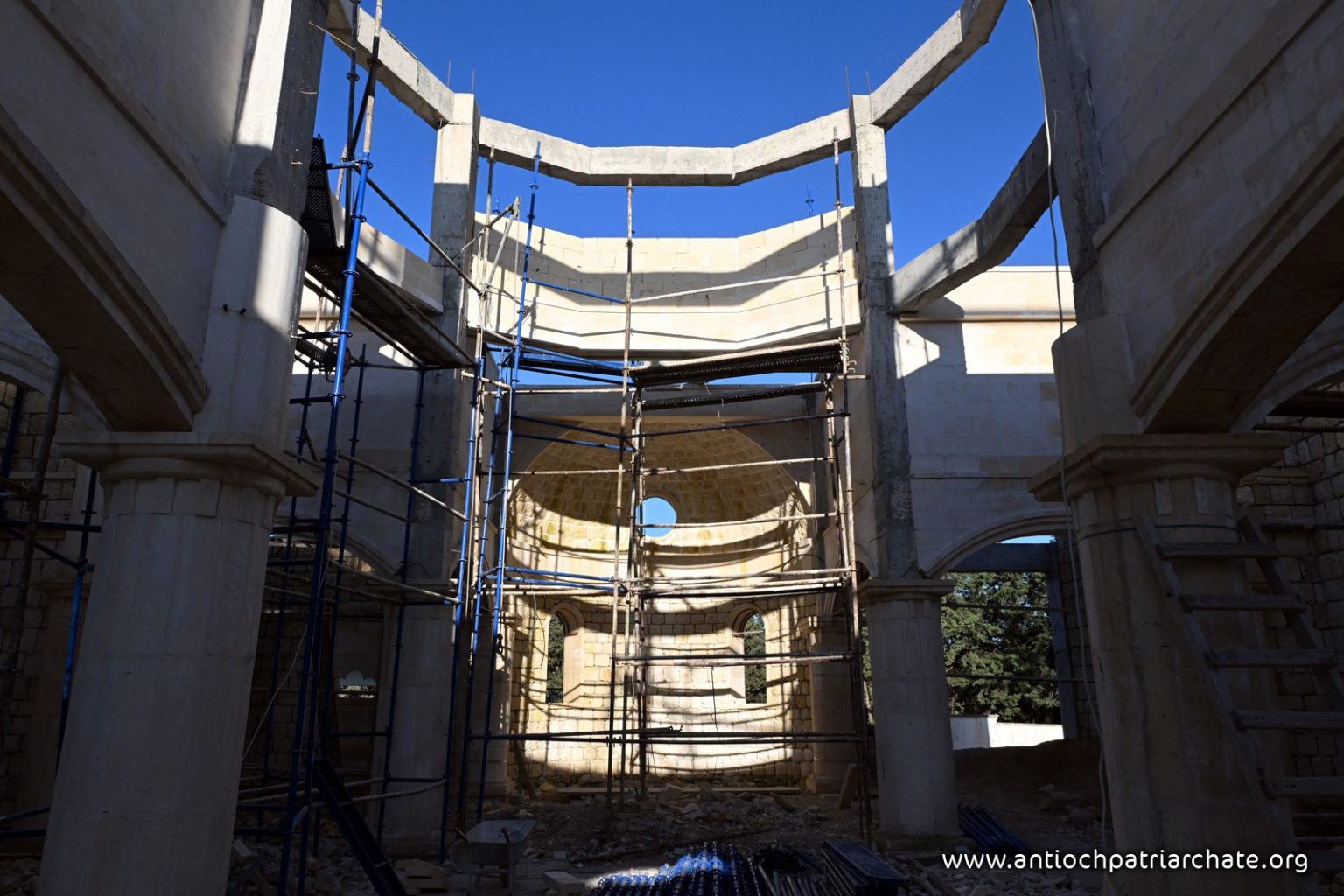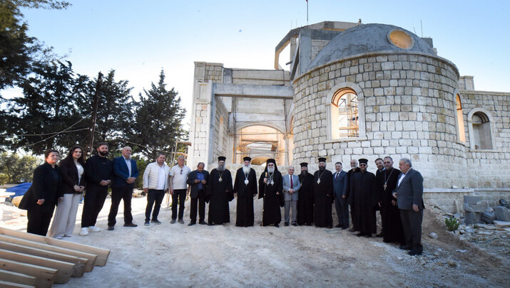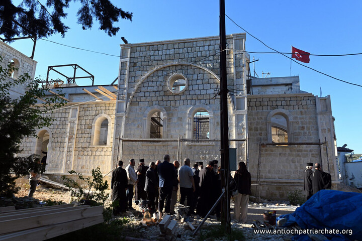 Ο Μακαριώτατος ξεκίνησε την επίσκεψή του επιθεωρώντας τα έργα ανοικοδομήσεως του νέου ναού της Ιεράς Μονής Αγίου Γεωργίου, ο οποίος ανεγείρεται σήμερα χάρη στον ζήλο των ενοριτών και με την ευλογία και την ενθάρρυνση του Μακαριωτάτου. Ο Πατριάρχης επιθεώρησε τα στάδια των εργασιών, επιβεβαιώνοντας ότι τα θεμέλια αυτού του ναού αποτελούν μια σαφή διακήρυξη της νίκης της θελήσεως για ζωή ενάντια στα ίχνη της καταστροφής.
