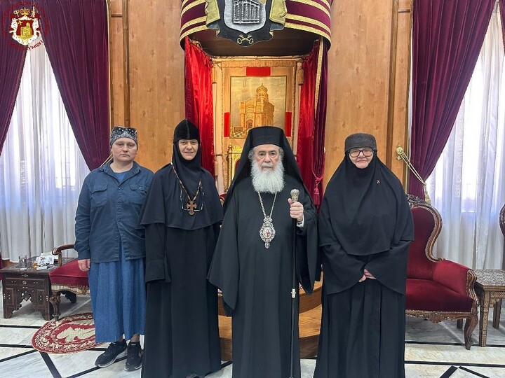 Ακολούθως ο Μακαριώτατος εδέχθη την μοναχήν Μαγδαληνήν της Ιεράς Μονής Αγίας Μαρίας Μαγδαληνής της Γεσθημανής μετά συνεργατών αυτής εργασθεισών εις την συντήρησιν του αντιγράφου του χάρτου της Μαδηβάς μετά του συντηρητού χειρογράφων και εικόνων κ. Σταύρου Ανδρέου.
