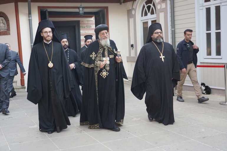 Τον Μακαριώτατο συνοδεύουν οι Σεβ. Μητροπολίτες Κουσία και Μιρ κ. Θωμάς, και Μααντί, Μπασατίν και Νταρ ελ Σαλάμ κ. Δανιήλ, ο Θεοφιλ. Επίσκοπος κ. Άγγελος, ο Εξοχ. Δρ. Wael Badawi, Πρέσβυς της Αιγύπτου στην Τουρκία, ο Εντιμ. κ. Hatim Elalfy, Γενικός Πρόξενος στην Πόλη, καθώς και κληρικοί και λαϊκοί συνεργάτες του.