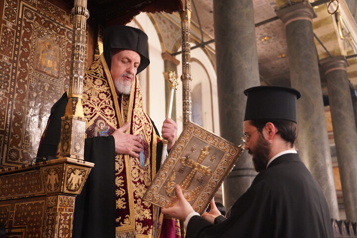 Ο Παναγιώτατος προσφώνησε εγκαρδίως τον Μακαριώτατο, ο οποίος αντιφώνησε το ίδιο θερμά.