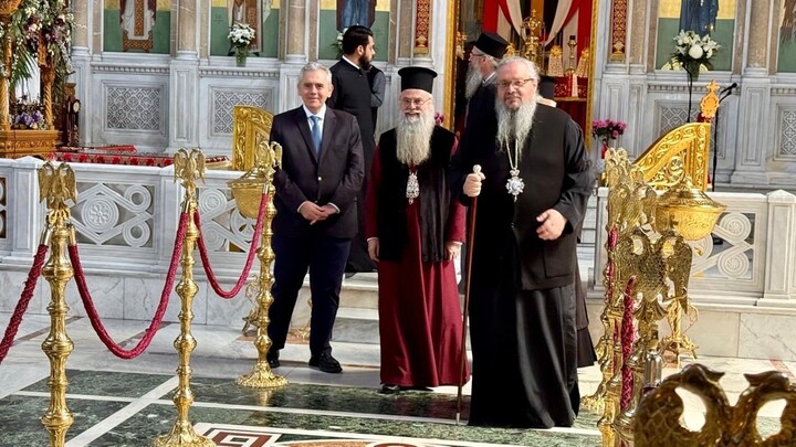 Τους υψηλούς προσκεκλημένους, αφού προσκύνησαν το Ιερό Λείψανο του Αγίου Αχιλλίου, ξενάγησε στον Ιερό Ναό και τους πέριξ χώρους, καθώς επίσης και στο Μητροπολιτικό Αρχονταρίκι, ο Σεβασμιώτατος Μητροπολίτης Λαρίσης και Τυρνάβου κ. Ιερώνυμος αναφερόμενος στην ιστορία της πόλης και του Ναού. Υπενθυμίζεται ότι το λείψανο του Αγίου Αχιλλίου είχε αφαιρεθεί από την πόλη της Λαρίσης το 969 από τον τσάρο των Βουλγάρων Σαμουήλ, ο οποίος όχι μόνο το λείψανο, αλλά και όλους τους Λαρισαίους συναπεκόμισε και εγκατέστησε στην περιοχή των Πρεσπών. Έτσι, ο Άγιος Αχίλλιος είναι ο Άγιος στο πρόσωπό του οποίου, Έλληνες και Βούλγαροι συναντώνται, καθώς αποτελεί ουσιαστικό τμήμα της ιστορίας των δύο λαών.