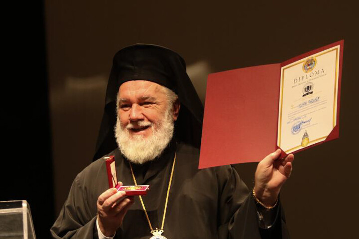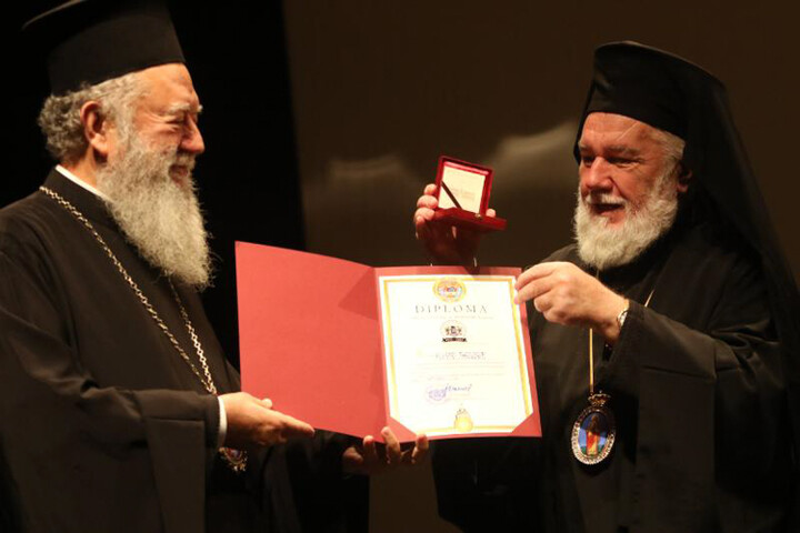 Κατόπιν, απένειμε το χρυσό μετάλλιο του Πατριάρχη Ρουμανίας στο περιοδικό Θεολογία, το οποίο παρέλαβε ο Μητροπολίτης Χαλκίδος κ. Χρυσόστομος αντιπρόεδρος της ΕΜΥΕΕ.