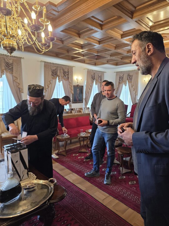 Κατά τη διάρκεια της επίσκεψης, ο Βλάντε Ντίβατς και οι υπόλοιποι επισκέπτες είχαν την ευκαιρία να συναντηθούν στο Συνοδικό με τον Καθηγούμενο της Μονής Αρχιμανδρίτη Μεθόδιο, ο οποίος τους ενημέρωσε για την ολοκλήρωση των εργασιών ανακαίνισης της Μονής και για τα μελλοντικά έργα που σχεδιάζονται.