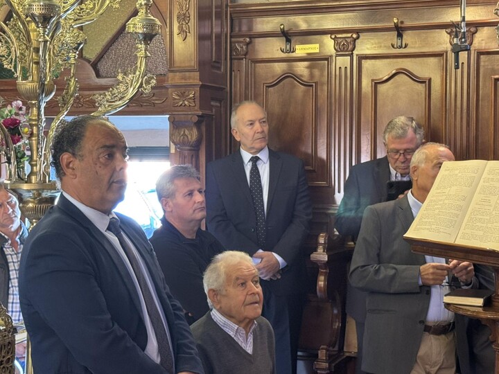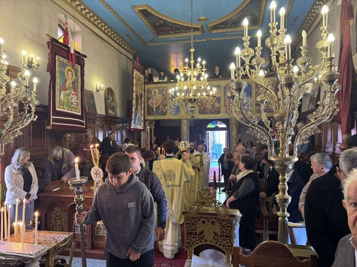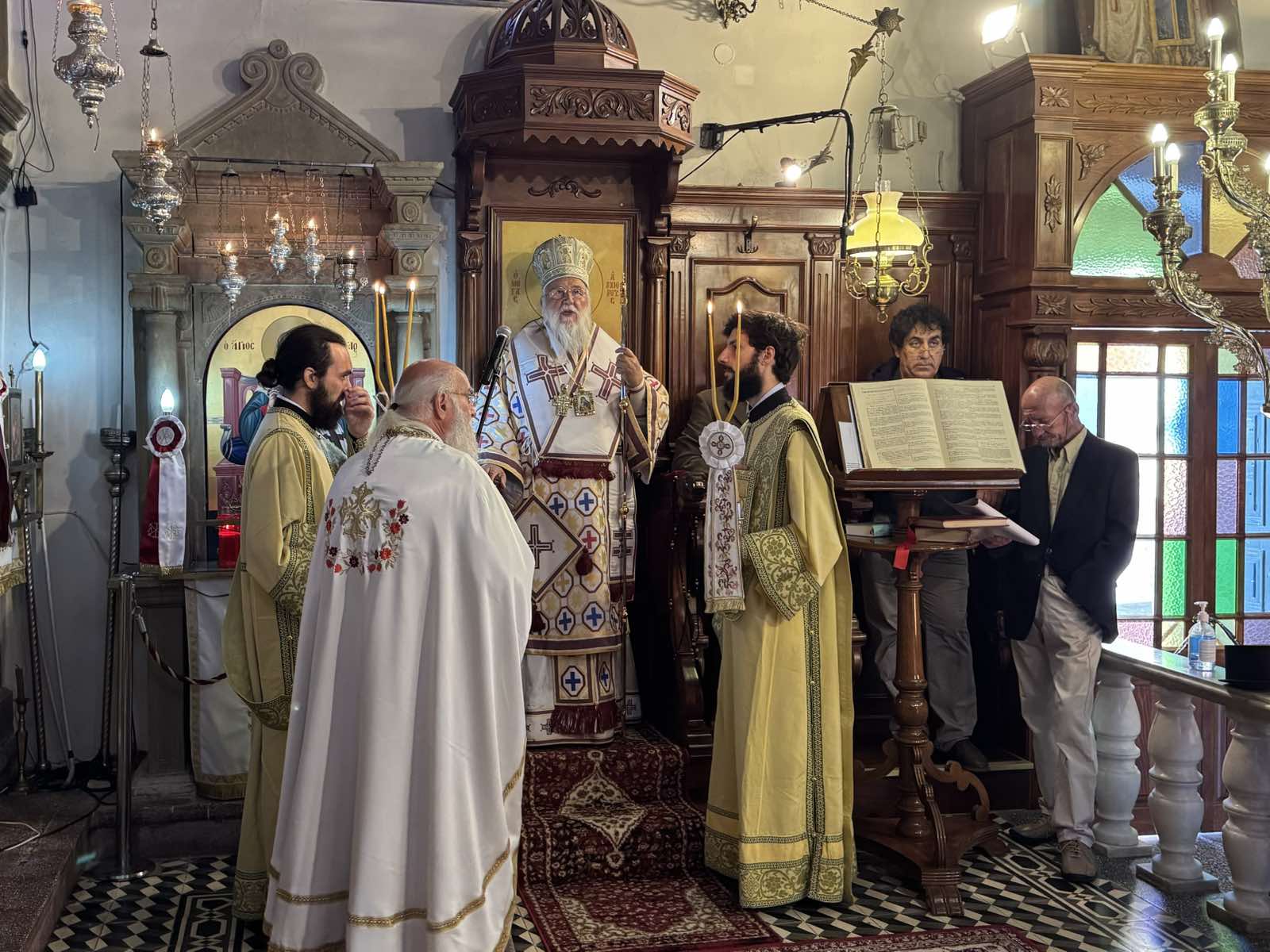 Στην εν λόγω ενορία διακονεί με κατά Θεόν ζήλο και αγάπη, επί σειρά πολλών ετών, ο Πρωτοπρεσβύτερος Δημήτριος Καρύδης, ο οποίος και πλαισίωσε το Σεβασμιώτατο στη Θεία Λειτουργία, μαζί με τους Διακόνους του, π. Ευσέβιο Πανδή και π. Σπυρίδωνα Πηγή. Επίσης, παρών στη Θεία Λειτουργία ήταν και ο Υφυπουργός Ναυτιλίας και Νησιωτικής πολιτικής, κ. Στέφανος Γκίκας.