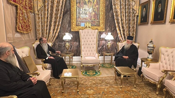 Τον Ηγούμενο της Ιεράς Μονής του Θεοβαδίστου Όρους Σινά και νέο Αρχιεπίσκοπο Σινά, Φαράν και Ραϊθώ κ. Συμεών, υπεδέχθη σήμερα Δευτέρα 6 Οκτωβρίου 2025 στα γραφεία της Ιεράς Μητροπόλεως Πειραιώς στο «ΜΑΡΙΝΑΚΕΙΟΝ ΜΕΛΑΘΡΟΝ», ο Σεβασμιώτατος Μητροπολίτης Πειραιώς κ. Σεραφείμ.