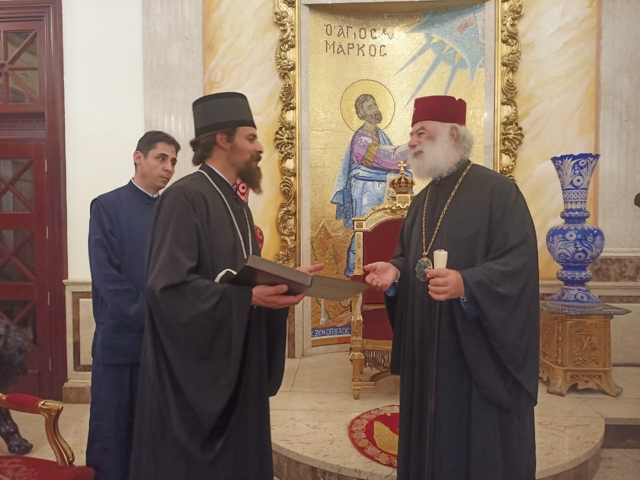 Από την πλευρά του, ο Επίσκοπος Παΐσιος ευχαρίστησε για τη φιλοξενία και μετέφερε τις αδελφικές ευχές του Πατριάρχη Πορφυρίου, εκφράζοντας θαυμασμό για το πνευματικό και φιλανθρωπικό έργο της Εκκλησίας του Αποστόλου Μάρκου στην Αφρική. Στο τέλος, οι προσκυνητές ξεναγήθηκαν στους χώρους της Πατριαρχικής Καθέδρας.