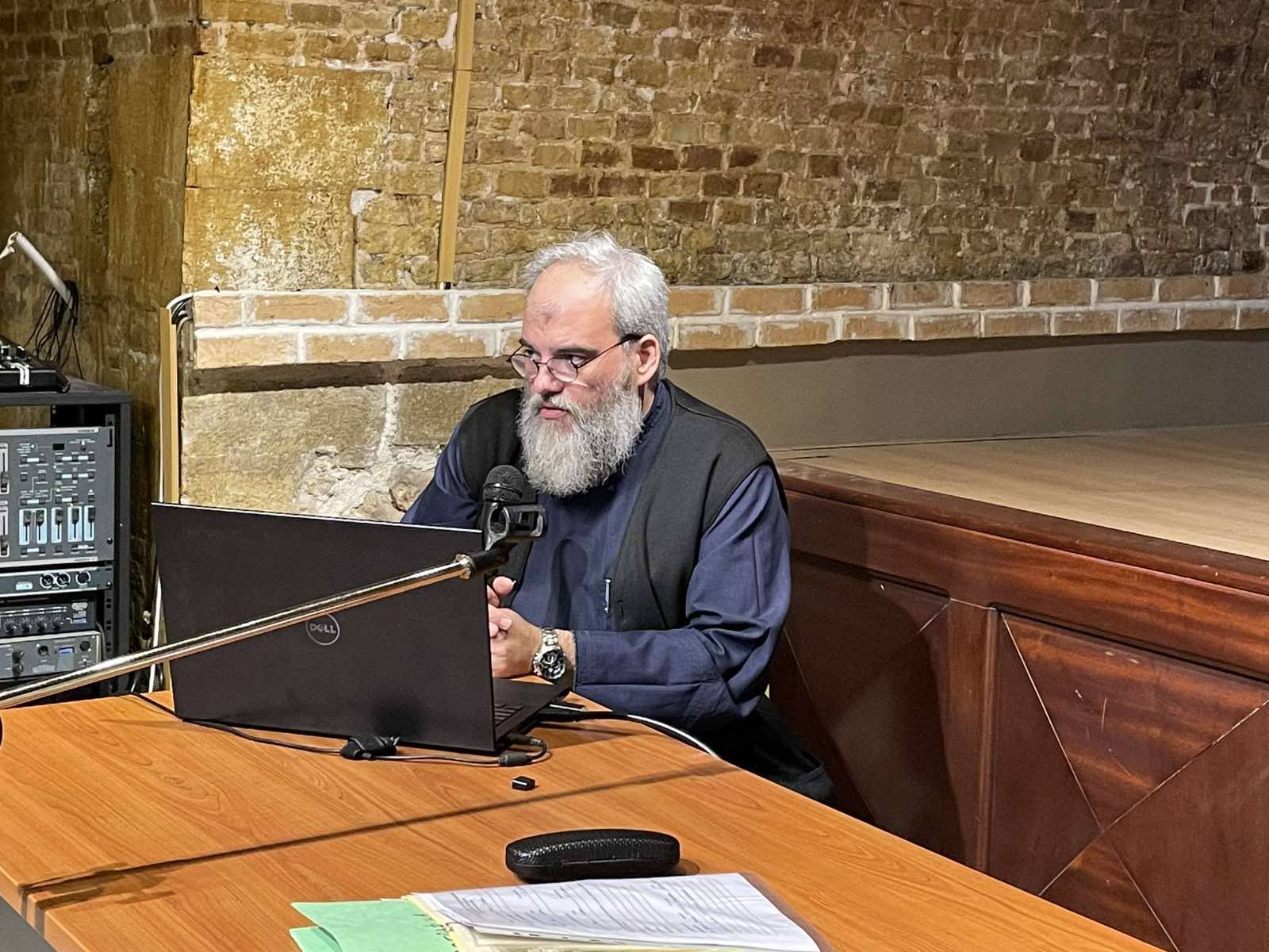 Μετά την παρουσίαση τον λόγο πήρε ο Γενικός Αρχιερατικός Επίτροπος της Ιεράς Μητροπόλεως Κερκύρας π. Θεμιστοκλής Μουρτζανός, ο οποίος, αρχικά μετέφερε τις πατρικές ευλογίες και ευχές, για ένα εποικοδομητικό και καρποφόρο ιεραποστολικό χρόνο, του Σεβασμιωτάτου Μητροπολίτου μας κ. Νεκταρίου. Ακολούθως επεσήμανε την αναγκαιότητα της κατήχησης, εστιάζοντας σε τρία σημαντικά σημεία σχετικά μ’ αυτήν. Το πρώτο και πολύ σημαντικό είναι ότι δεν πρέπει να πορευόμαστε στην κατήχηση με όρους πλειοψηφίας και μειοψηφίας, ούτε με την απαίτηση τού να είναι πολλά τα παιδιά και τη θλίψη αν αυτό δεν συμβαίνει. Ας επικεντρωθούμε στις προσχολικές ηλικίες, όμως ισχύει ο αποστολικός λόγος «μὴ φοβοῦ τὸ μικρὸν ποίμνιον….μικρὰ ζύμη ὅλον τὸ φύραμα ζυμοῖ». Το δεύτερο σημείο έχει να κάνει με την ανάδειξη των χριστιανικών εορτών, κυρίως δε των Αγίων, οι οποίες έχουν αντικατασταθεί από γιορτές άλλων χωρών, όπως το Halloween και τα γενέθλια. Τρίτο σημείο η αναγκαιότητα της παρουσίας του ιερέως στην κατήχηση και όπου αυτό είναι εφικτό, σε εκδηλώσεις που αφορούν παιδιά και σχολείο.