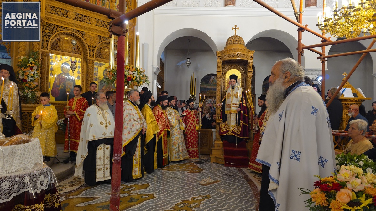Η πομπή κατέληξε στον Μητροπολιτικό Ναό της Αίγινας, όπου η Αγία Κάρα τέθηκε σε προσκύνηση. Μαθητές της Σχολής Μαθητείας Υποψηφίων Κληρικών έψαλαν τα Εγκώμια του Αγίου, ενώ η προσέλευση των πιστών συνεχιζόταν αδιάκοπα.
