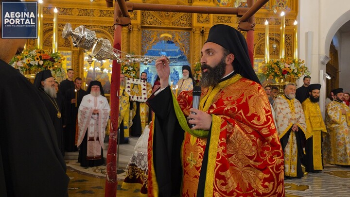 Ιερείς, μοναχοί, μαθητές, φιλαρμονικές και στρατιωτικά αγήματα συνόδευσαν τον Άγιο στους δρόμους της Αίγινας, ενώ οι καμπάνες ήχησαν χαρμόσυνα. «Ο Άγιος Νεκτάριος να ευλογεί όλο τον κόσμο και να φωτίζει κάθε ψυχή που ζητά ελπίδα», ευχήθηκε ο Μητροπολίτης Ύδρας, Σπετσών και Αιγίνης κ. Εφραίμ, ο οποίος προεξήρχε της τελετής.