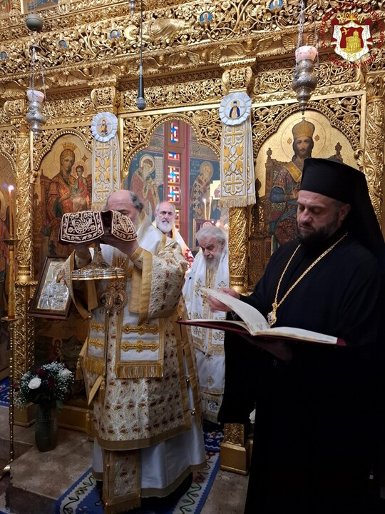 Τῇ εὐγενεῖ προσκλήσει τοῦ Ἀντιπροσώπου τοῦ Πατριαρχείου Ρουμανίας εἰς Ἱεροσόλυμα Ἀρχιμανδρίτου π. Ἰωάννου, ὁ Μακαριώτατος Πατήρ ἡμῶν καί Πατριάρχης Ἱεροσολύμων κ.κ. Θεόφιλος προεξῆρξε θείας Λειτουργίας εἰς τὴν ἱερὰν Μονὴν Ἁγίου Γεωργίου τῆς Ρουμανικῆς Ἀντιπροσωπείας εἰς Ἱεροσόλυμα, εἰς τὴν συνοικίαν τῶν θρησκευομένων Ἰουδαίων, τὴν Κυριακὴν 27ην Ὀκτωβρίου/ 9ην Νοεμβρίου 2025, ἑπομένην τῆς μνήμης τοῦ ἁγίου μεγαλομάρτυρος Δημητρίου καὶ τοῦ μαθητοῦ αὐτοῦ μεγαλομάρτυρος Νέστορος, κατὰ μετάθεσιν διά λόγους ποιμαντικοὺς.