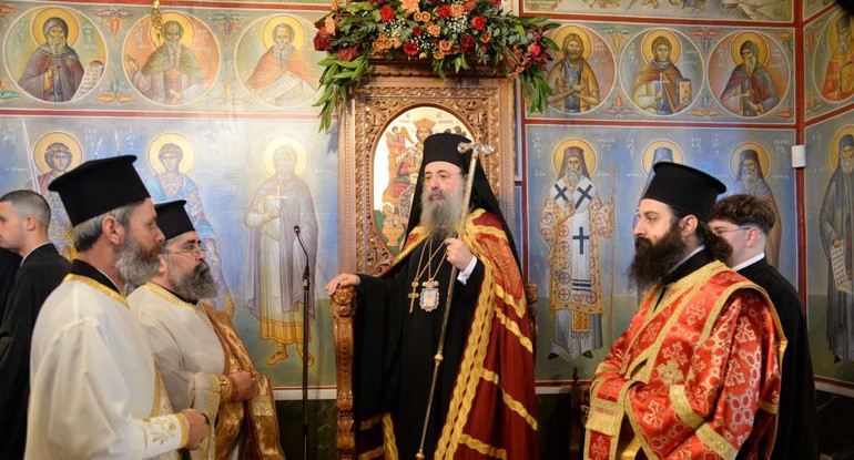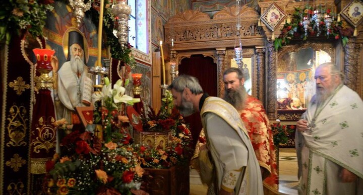 Ἐκάλεσε δέ ὃλους νά ἀκολουθοῦν, νά ἀκολουθοῦμε στά βήματα τοῦ Ἁγίου καί νά διατηροῦμε στή ζωή μας τά ἱερά διδάγματα καί τήν διδασκαλία του, τήν παρακαταθήκη πού κατέλιπε σέ μας.