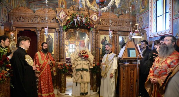 Τῆς Θείας Λειτουργίας προέστη ὁ Σεβασμιώτατος Μητροπολίτης Πατρῶν κ.κ. Χρυσόστομος, συλλειτουργοῦντος τοῦ Σεβασμιωτάτου Μητροπολίτου Κινσάσας κ. Θεοδοσίου.
