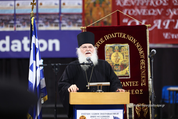 Στον χαιρετισμό του, ο Μητροπολίτης Θεσσαλονίκης κ. Φιλόθεος τόνισε τον αγώνα και την προσφορά των πολύτεκνων οικογενειών: