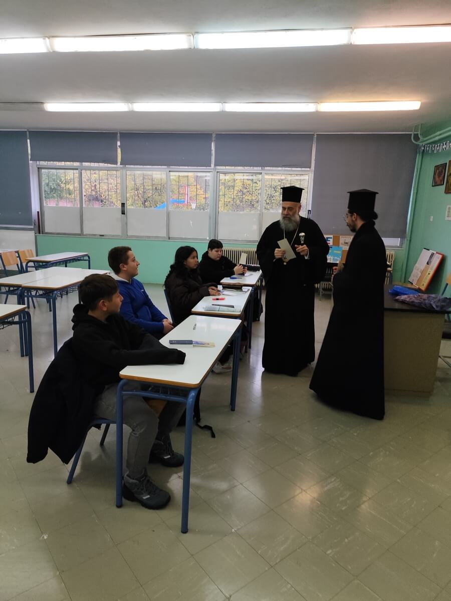 Ποιμαντική περιοδεία του Μητροπολίτη Τιμοθέου σε σχολεία της περιοχής, με διανομή Καινής Διαθήκης και ουσιαστική συζήτηση με τους μαθητές της Α΄ Γυμνασίου.