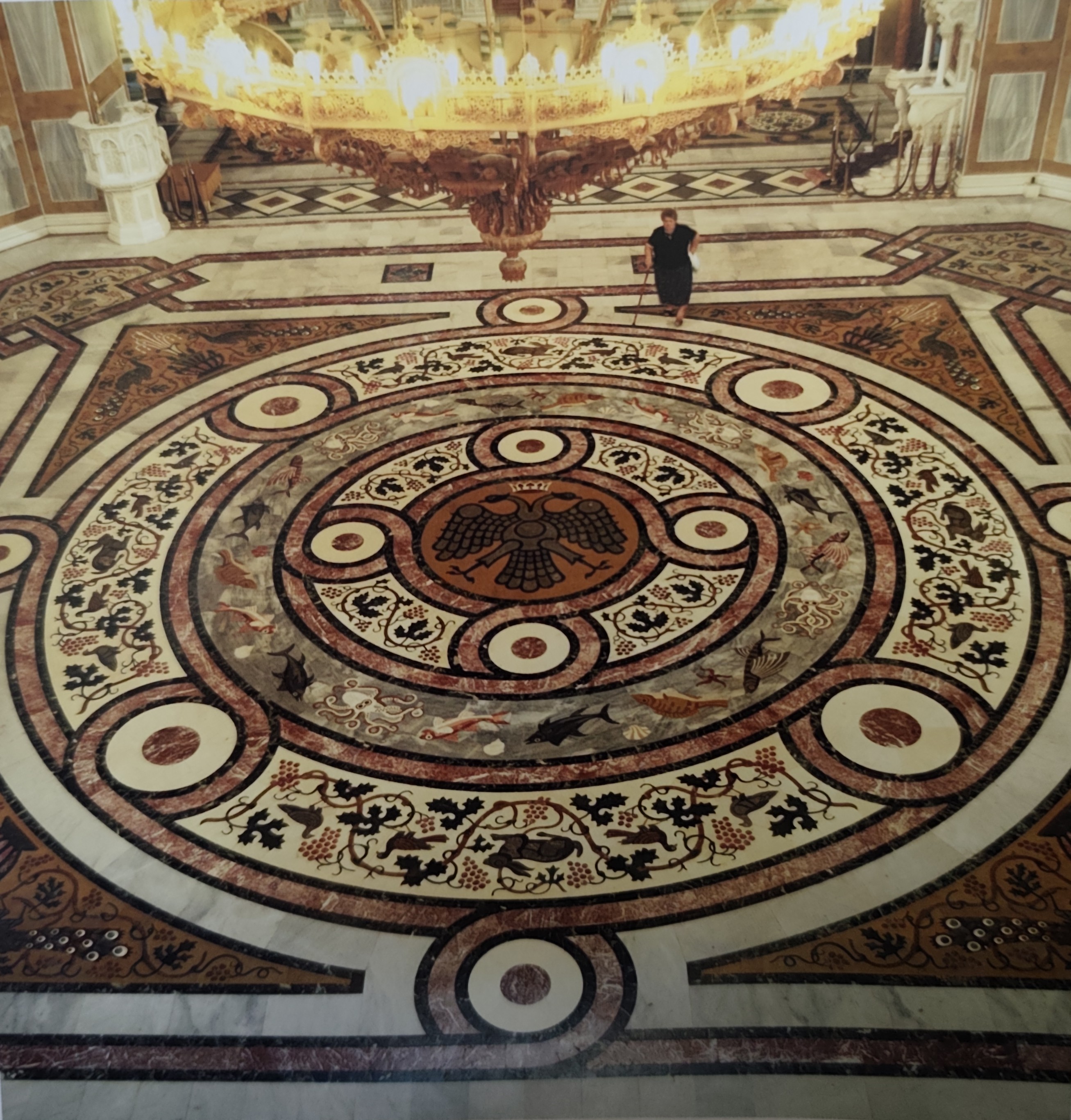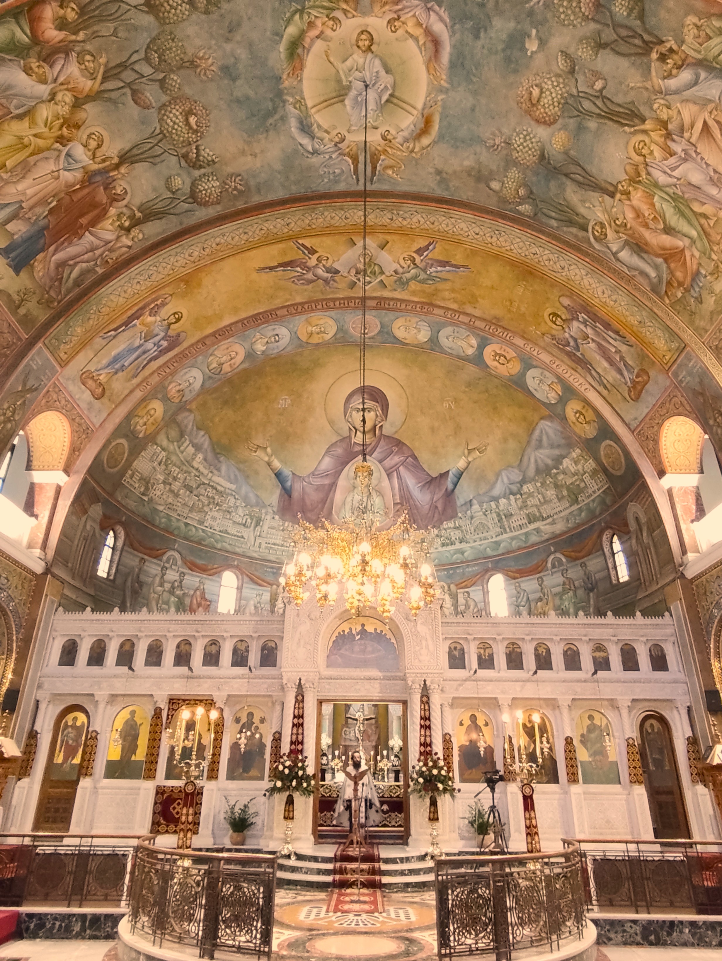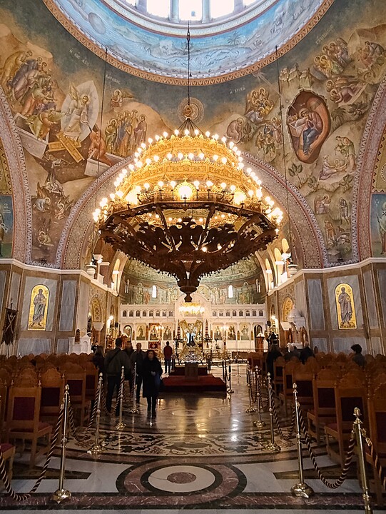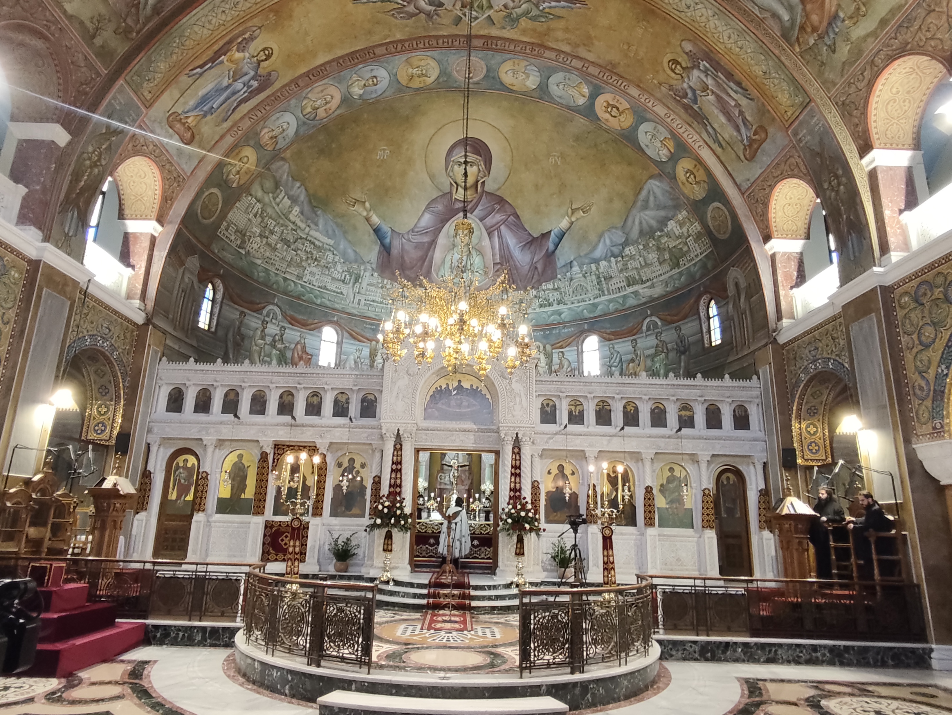 Εσωτερικά, ο ναός του Αγίου Ανδρέα είναι διακοσμημένος με πολλά ψηφιδωτά και σπουδαία μαρμαροθετήματα. Από την μνημειακή εικονογράφηση – του γιγαντιαίου για τα ελληνικά δεδομένα οικοδομήματος- ενδιαφέρουσα είναι η παράσταση στην κόγχη του ιερού με την Παναγία σε δέηση η οποία προστατεύει την πόλη της Πάτρας. […]