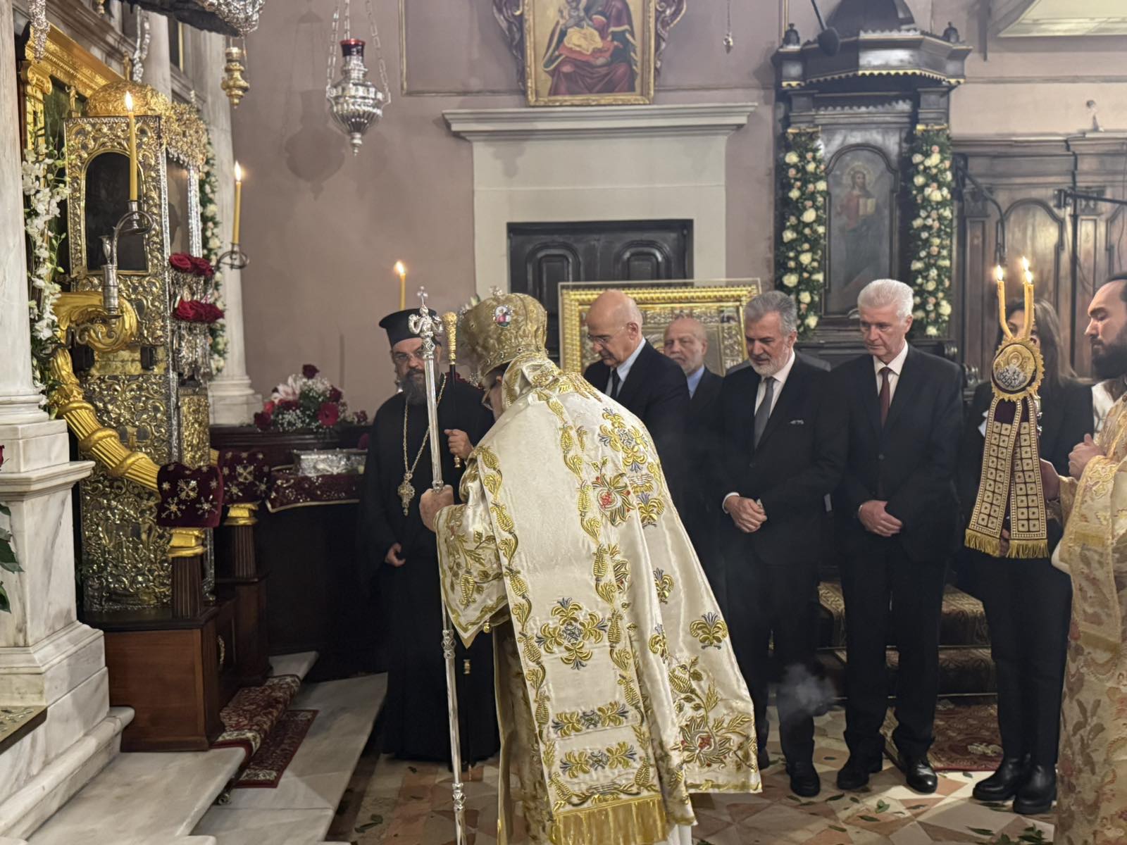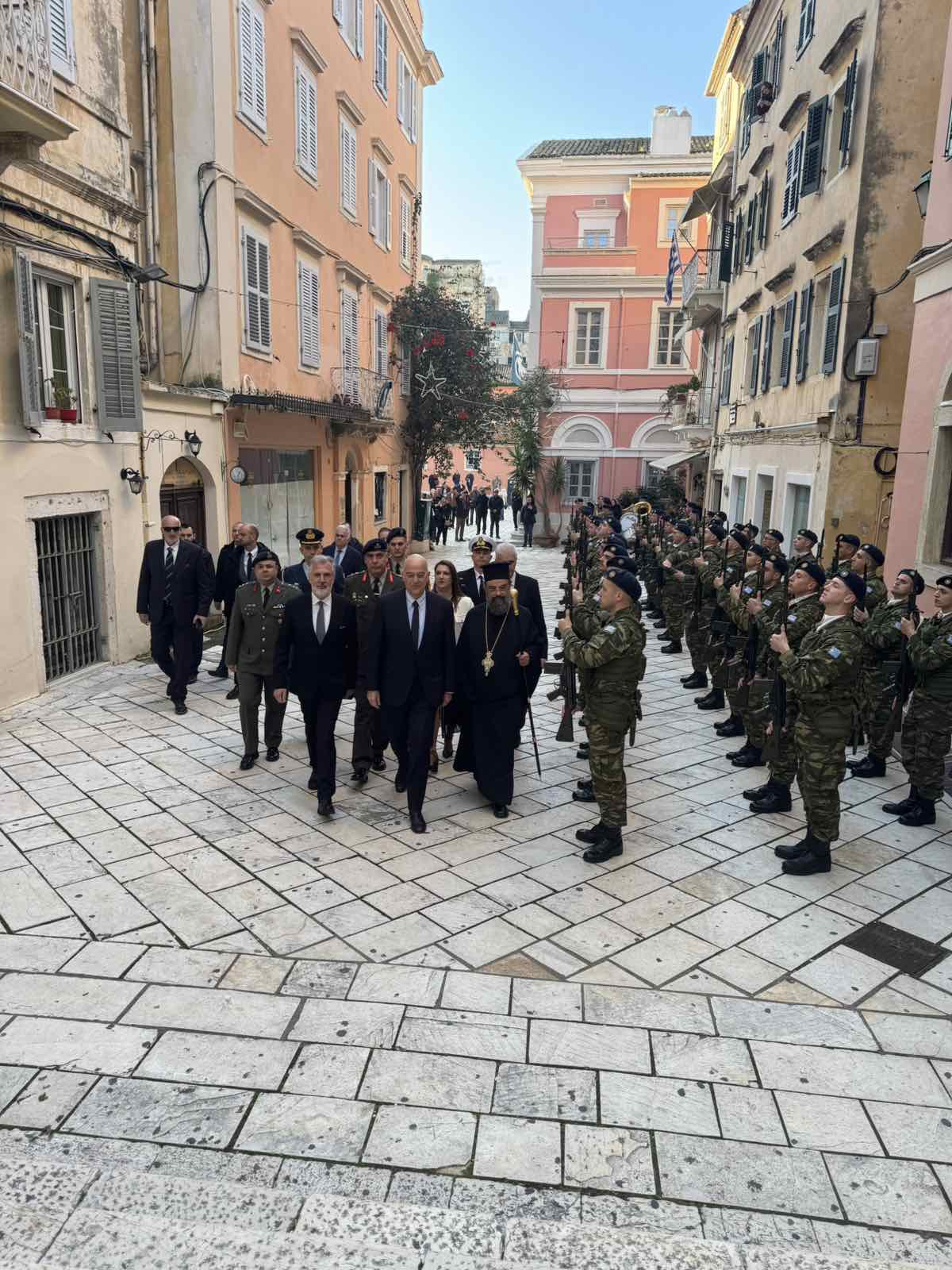 Η χαρά μας όμως πολλαπλασιάζεται, καθότι κοντά μας βρίσκεται ο Αξιότιμος Υπουργός Εθνικής Αμύνης, ο οικείος, ο Κερκυραίος κ. Νικόλαος Δένδιας. Γνωρίζουμε και εκτιμούμε βαθύτατα, κύριε Υπουργέ, την βαθιά σας πίστη. Γνωρίζουμε την αγάπη σας και τον σεβασμό σας για τον Άγιο Σπυρίδωνα.