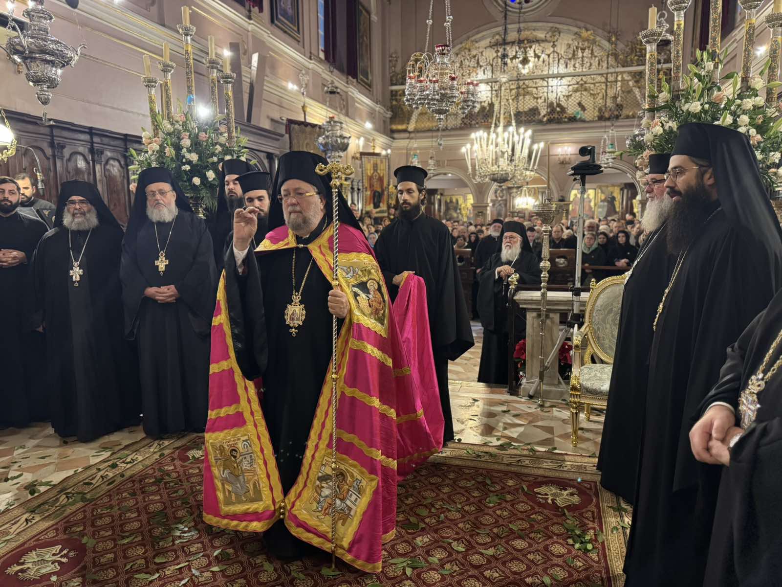 Θα παρακαλέσουμε ταπεινώς να μεταφέρετε στην αυτού Παναγιότητα τον Οικουμενικό Πατριάρχη κ.κ. Βαρθολομαίο, ο οποίος πριν από 11 ακριβώς χρόνια ήταν εδώ, προεστώς της ευχαριστιακής συνάξεως, τον βαθύτατο σεβασμό μας και την υιϊκή μας αγάπη, καθώς και τις ευχές του ιερού κλήρου, του πιστού λαού και των αρχόντων του τόπου για ειρήνη, για ενότητα, για αγάπη, για αδιάπτωτο ορθόδοξο μαρτυρία στην Οικουμένη.