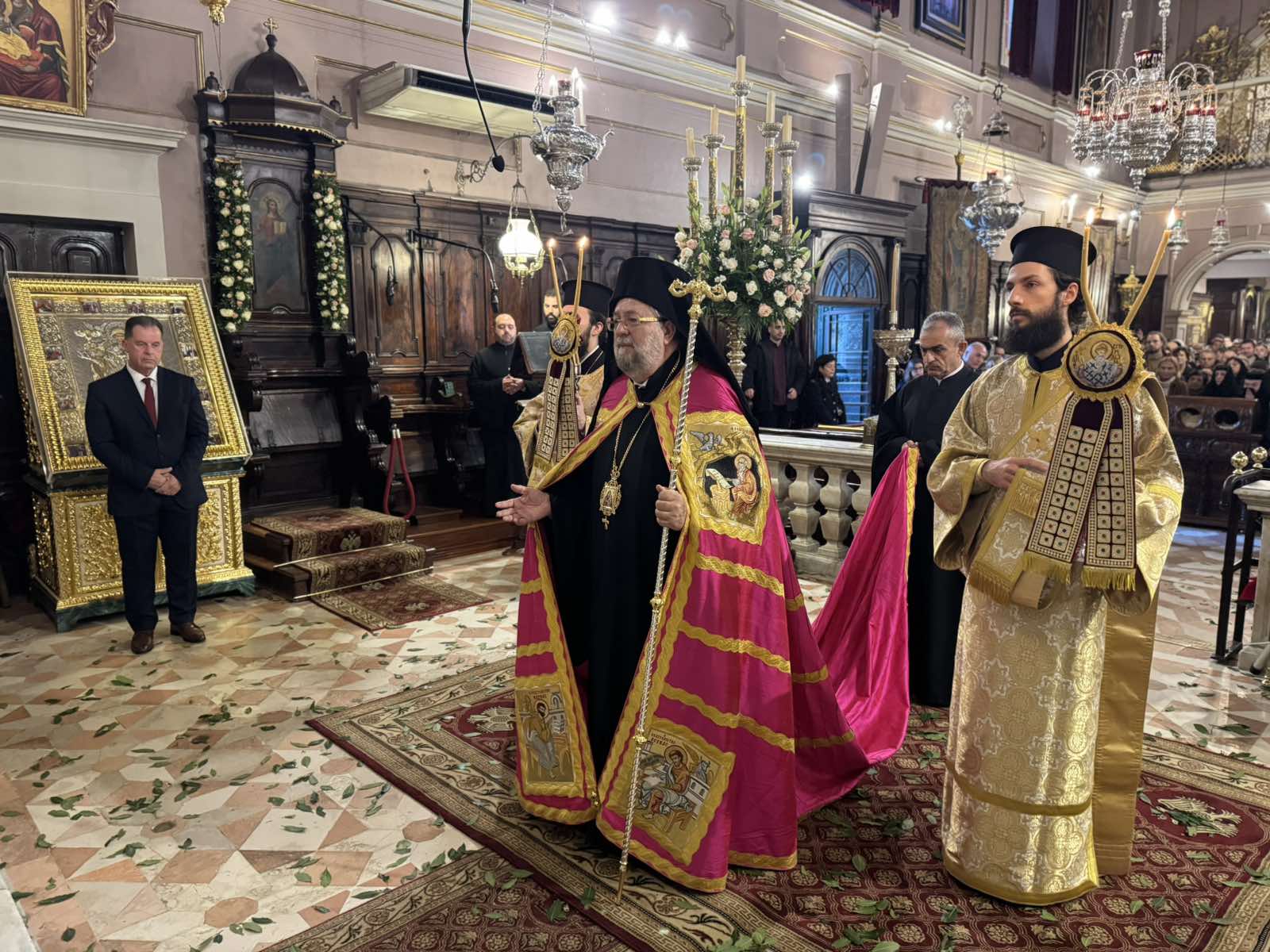 Η παρουσία σας, Σεβασμιώτατοι, μας υπενθυμίζει τη συνέχεια του Γένους μας. Ήρθατε να μας φέρετε τις δικές σας μνήμες από τον Άγιο, που προστάτεψε επί τόσους αιώνες με τη σειρά του και αυτός, εκτός από την Υπέρμαχο Στρατηγό, την πρωτεύουσα της Ρωμηοσύνης.