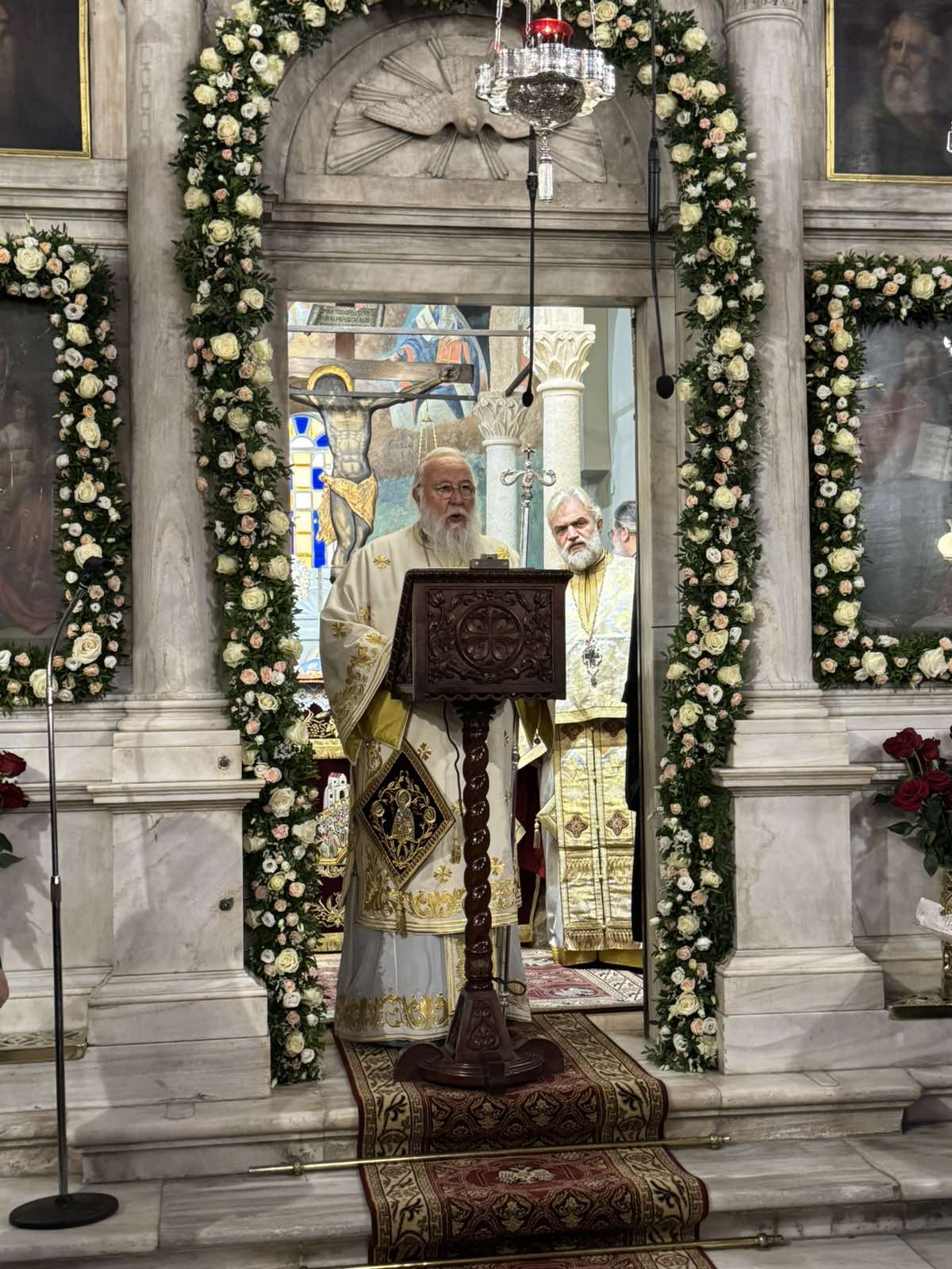 Τον θείο λόγο κήρυξε ο Σεβασμιώτατος Μητροπολίτης Γέρων Πριγκηποννήσων κ. Δημήτριος, ο οποίος μετέφερε στον λαό του Θεού ένα ταπεινό προσωπικό του βίωμα, το οποίο έζησε πριν από δεκατέσσερις ημέρες στην Νίκαια της Βιθυνίας, κατά τις πρόσφατες εκδηλώσεις για τη συμπλήρωση 1700 χρόνων από την σύγκληση εκεί της Α’ Οικουμενικής Σύνοδος. Αφόρμηση του βιώματος ήταν το ρητό θέλημα του Θεού, όπως αποτυπώνεται στον λόγο του Αγίου Ιακώβου του Αδελφοθέου: « Ο Θεός υπερηφάνοις αντιτάσσεται, ταπεινοίς δε δίδωσι χάριν».
