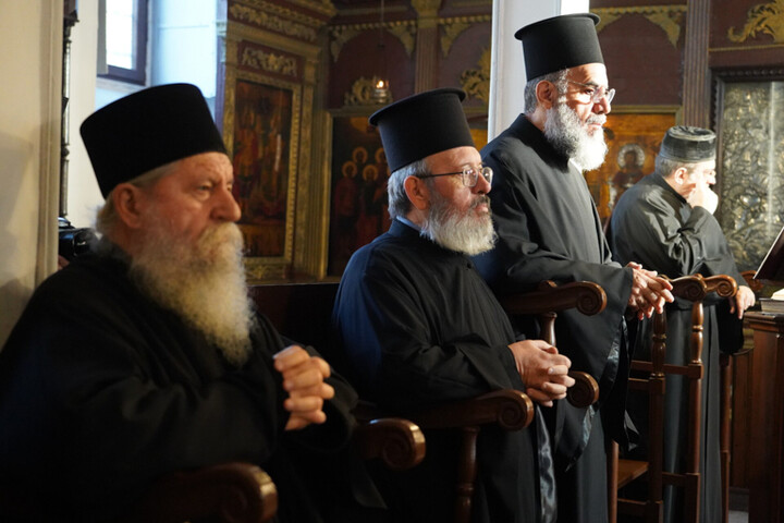 Καλωσόρισε δε εγκαρδίως τον Σεβ. Μητροπολίτη Σύμης κ. Χρυσόστομο και τον προσφάτως χειροτονηθέντα βοηθό του Θεοφιλ. Επίσκοπο Ροδοστόλου κ. Αντώνιο, “εις τον οποίον ευχόμεθα θεοτερπή και καλλίκαρπον αρχιερατικήν διακονίαν προς ενίσχυσιν και επιστηριγμόν του ποιμαντικού έργου της ακριτικής αυτής Επαρχίας της Μητρός Εκκλησίας”, καθώς και την αντιπροσωπεία της Ιεράς Πατριαρχικής και Σταυροπηγιακής Μονής Αγίου Διονυσίου του εν Ολύμπω, υπό τον Ηγούμενο αυτής Πανοσιολ. Αρχιμανδρίτη κ. Μάξιμο, “ο οποίος έρχεται ανελλιπώς κάθε χρόνο τέτοιες χρονιάρες ημέρες διά να λάβη την ευχήν της Μητρός Εκκλησίας διά το νέον έτος και μας δίνει πολλή χαρά!”