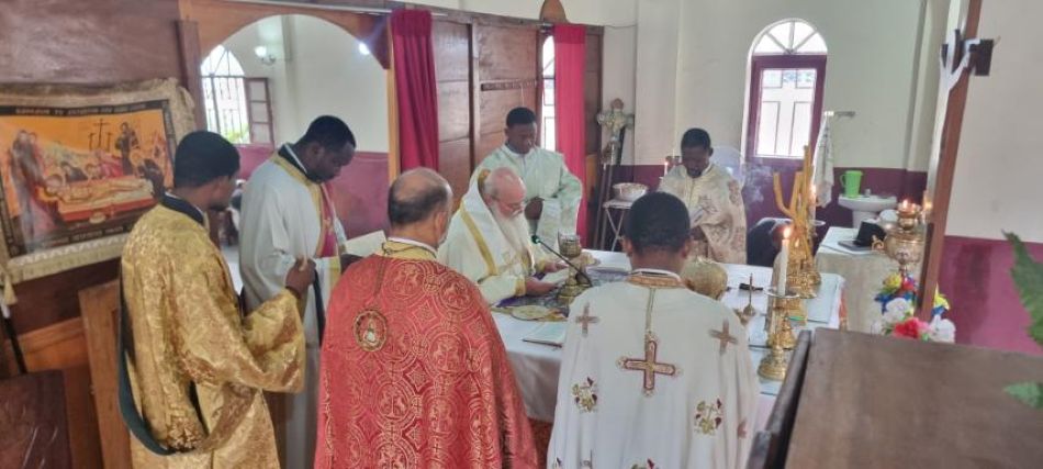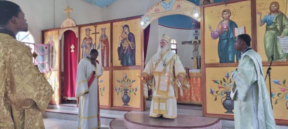Ο Αρχιμανδρίτης Μακάριος κατόπιν προτροπής του Μητροπολίτου κήρυξε τον Θείο Λόγο. Ο Αγιορείτης Μοναχός π. Κουκουζέλης μαζί με τους ιεροψαλτες της ενορίας έψαλλαν τους Ύμνους του Ορθρου και την Θεία Λειτουργία. Ο Μητροπολίτης στο τέλος της Θείας Λειτουργίας ευχαρίστησε τους αδελφούς εξ Ελλάδος με θερμούς λόγους. Μετά το πέρας της Θείας Λειτουργίας ο Μητροπολίτης με τους Ιερείς και Διακόνους τελεσαν το μυστήριο του Βαπτίσματος 45 κατηχουμένων της ενορίας οι οποίοι στο τέλος μετάλαβαν των Αχράντων Μυστηρίων. Ο Μητροπολίτης μίλησε στους νεοφωτίστους για το Μυστήριο του Βαπτίσματος και για την μεγάλη τιμή που τους επεφύλαξε ο Θεός να γίνουν μέλη της Αγίας Ορθοδοξίας. Τέλος μετέφερε σε όλους τις ευχές του Μακαριωτάτου Πάπα και Πατριάρχου Αλαξανδρείας και πάσης Αφρικής κ.κ Θεοδώρου του Β'.