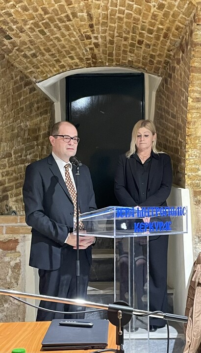 Την εκδήλωση χαιρέτησαν ο Αντιπρύτανης του Ιονίου Πανεπιστημίου κ. Ευστάθιος Μακρής, ο Περιφερειακός Διευθυντής Εκπαίδευσης Ιονίων Νήσων κ. Πέτρος Αγγελόπουλος, ενώ την παρουσίασε η Αναπληρώτρια Περιφερειακή Επόπτρια Ποιότητας Εκπαίδευσης Ιονίων Νήσων κ. Ξανθή Χουλιάρα. Παραβρέθηκαν ο Σεβασμιώτατος Αρχιεπίσκοπος των εν Κερκύρα Ρωμαιοκαθολικών κ. Γεώργιος, η Διευθύντρια Δευτεροβάθμιας Εκπαίδευσης κ. Έλενα Βουσολίνου, ο Διευθυντής Πρωτοβάθμιας Εκπαίδευσης κ. Αριστοτέλης Βλάσης και πολλοί εκπαιδευτικοί.