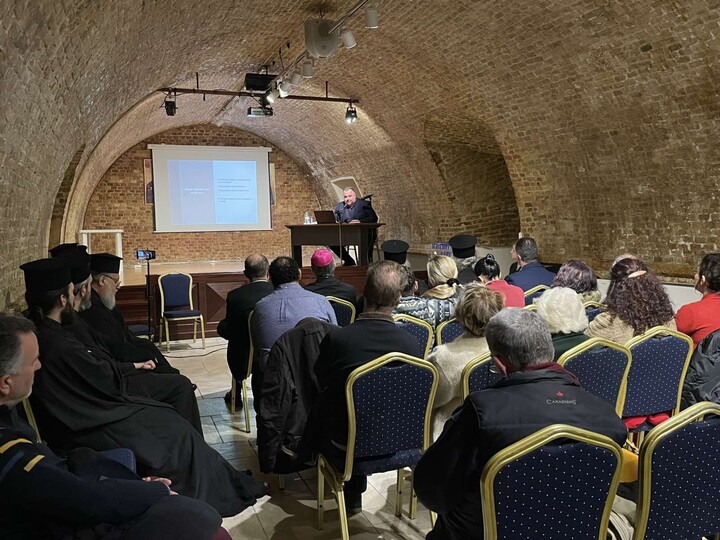 Κύριος ομιλητής της εκδήλωσης ήταν ο επίκουρος καθηγητής της Θεολογικής Σχολής του Αριστοτελείου Πανεπιστημίου Θεσσαλονίκης κ. Παύλος Σεραφείμ, με θέμα «Η ηθική της τεχνητής νοημοσύνης». Με αναφορά σε όλες τις διαστάσεις της τεχνητής νοημοσύνης, ο κ. Σεραφείμ επεσήμανε τις εξαιρετικές προοπτικές που δίνει η ανθρώπινη αυτή εφεύρεση σε τομείς όπως η υγεία, η καθημερινότητα, η εκπαίδευση, ενώ τόνισε τους δύο κινδύνους που υπάρχουν εξαιτίας: την υπερεκτίμηση των δυνατοτήτων της και την αδιαφορία για ζητήματα ηθικής που έχουν να κάνουν με το αν θα εκχωρήσουμε την απόφαση για τη χρήση όπλων, για τις προσλήψεις στην εργασία, για την ασφαλιστική ικανότητα, για τη θεραπεία σε δύσκολες ασθένειες στην τεχνητή νοημοσύνη, αρνούμενοι να αναλάβουμε τις ευθύνες μας. Ο ομιλητής τόνισε ότι ο άνθρωπος είναι πρόσωπο και η τεχνητή νοημοσύνη εργαλείο και όχι το αντίθετο. Γι’ αυτό χρειάζεται να ξαναβρούμε τη διάσταση του κατ’ εικόνα Θεού, αλλά και να συμφωνήσουμε σε παγκόσμιο επίπεδο να μην εκχωρήσουμε την ελευθερία μας σε αλγόριθμους.