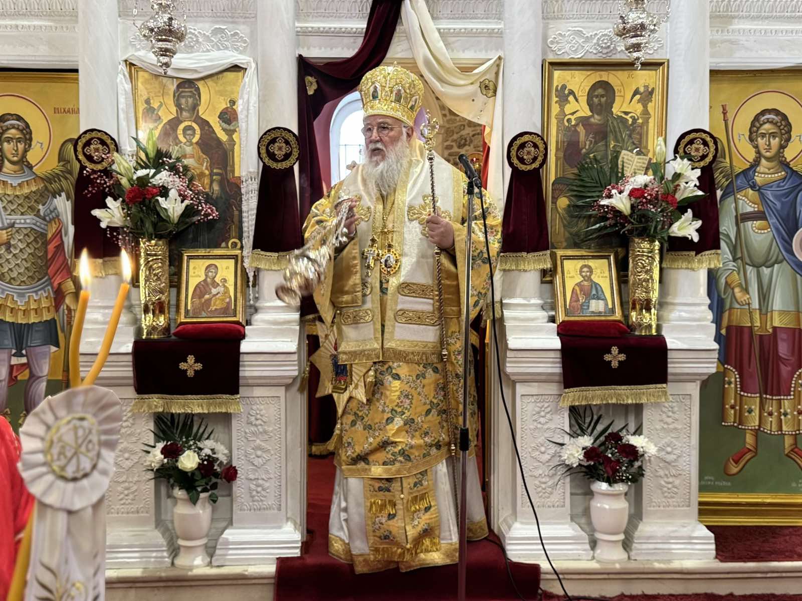 Στο τέλος, ο Σεβασμιώτατος εξέφρασε τη χαρά του που λειτούργησε στην εν λόγω ενορία και εξήρε την προσφορά του π. Σπυρίδωνος, χάριν της εργασίας του οποίου η ενορία στην πάροδο των ετών μετετράπη από «έρημος τόπος» σε πνευματικά γόνιμη, καρπός ενότητας, υπακοής και σωστής ποιμαντικής καθοδήγησης. Η σύμπνοια ποιμένα και ποιμνίου αποτελεί τη μεγαλύτερη ευλογία για κάθε ενορία και δύναμη που σβήνει μικρότητες και κακίες. Επίσης, ευχήθηκε σε όλους έναν ευλογημένο μήνα και καλή δύναμη για τον πνευματικό αγώνα της Αγίας και Μεγάλης Σαρακοστής.